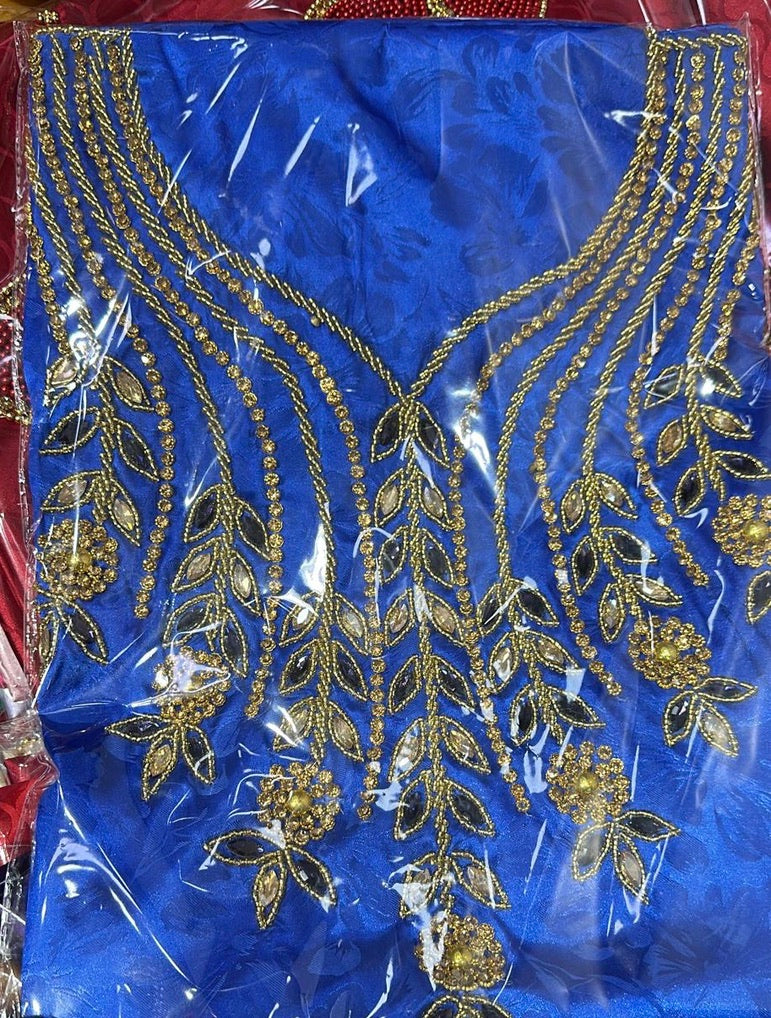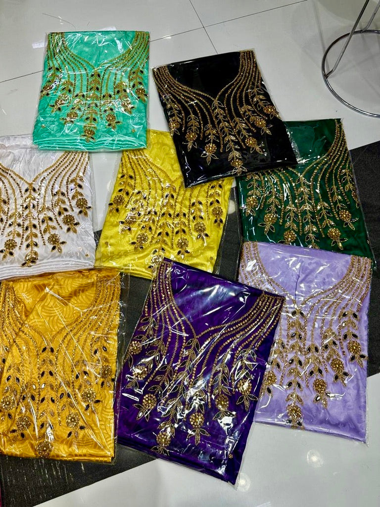 Be bold and beautiful in our African Bubu Maxi Dress with scarf! Made with a jacquard silk fabric, this free-flowing dress is perfect for summer parties and Nigerian weddings. Available in 20 vibrant colors, it's the perfect choice for any birthday celebration. Stand out and make a statement with this embellished floor-length dress.