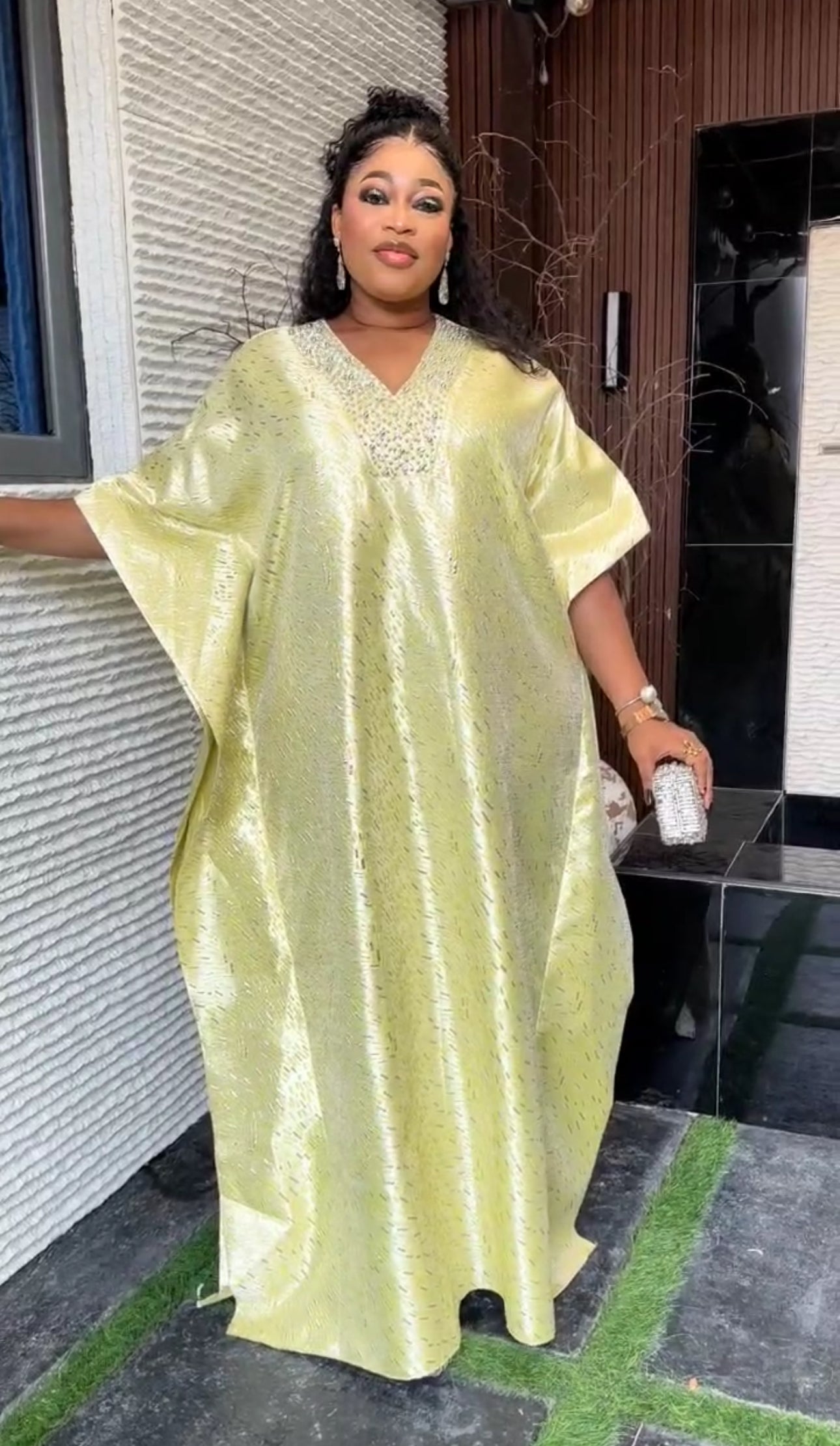 African Bubu Rhinestone Dress Metallic Brocade Nigerian Party Attire Engagement Ceremony Graduation Reception Gala Anniversary
