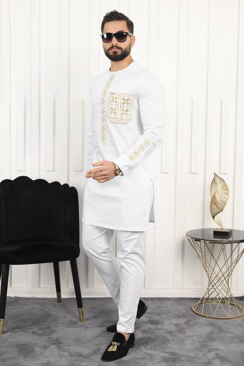 Luxury Men's Embroidered Agbada 3-Piece Set: African Wedding Attire Groom Groomsmen Aso Ebi Father of The Bride Nigerian Party Traditional Wear