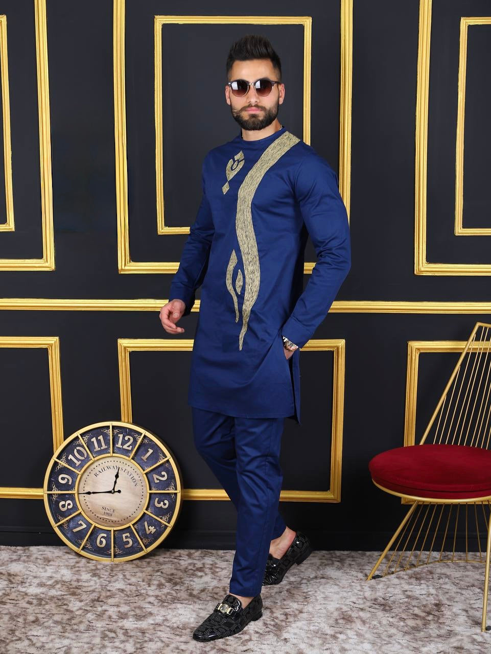African Men's Clothing Black Cotton Embroidered Shirt & Pants | Wedding Groom, Groomsmen, Guest Birthday Party