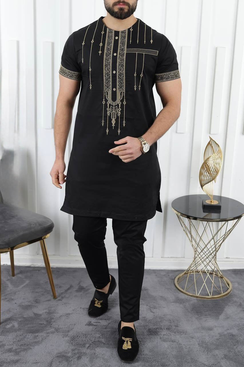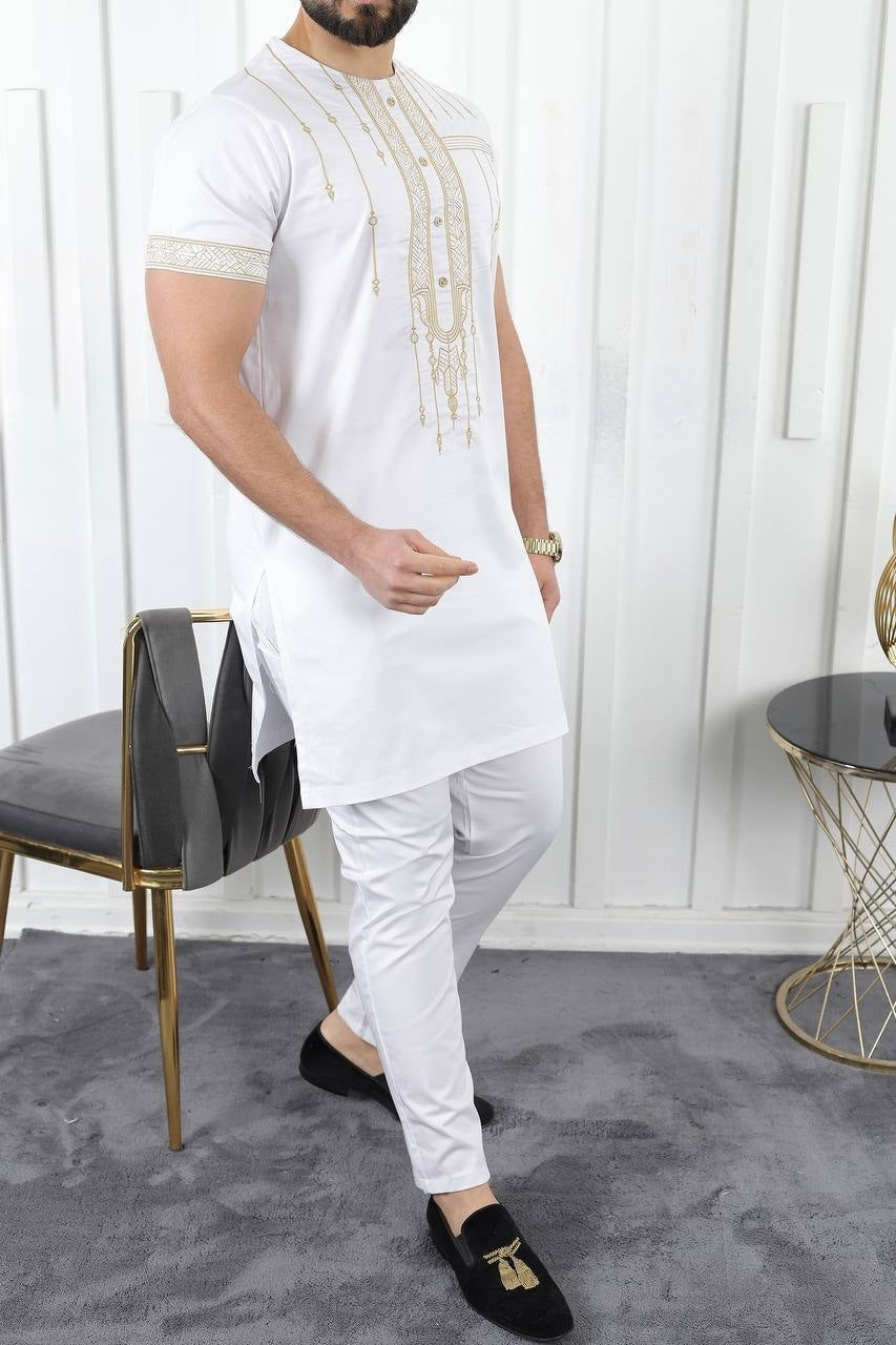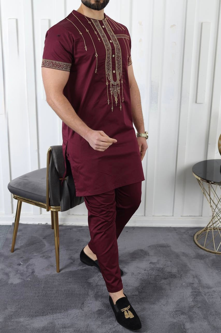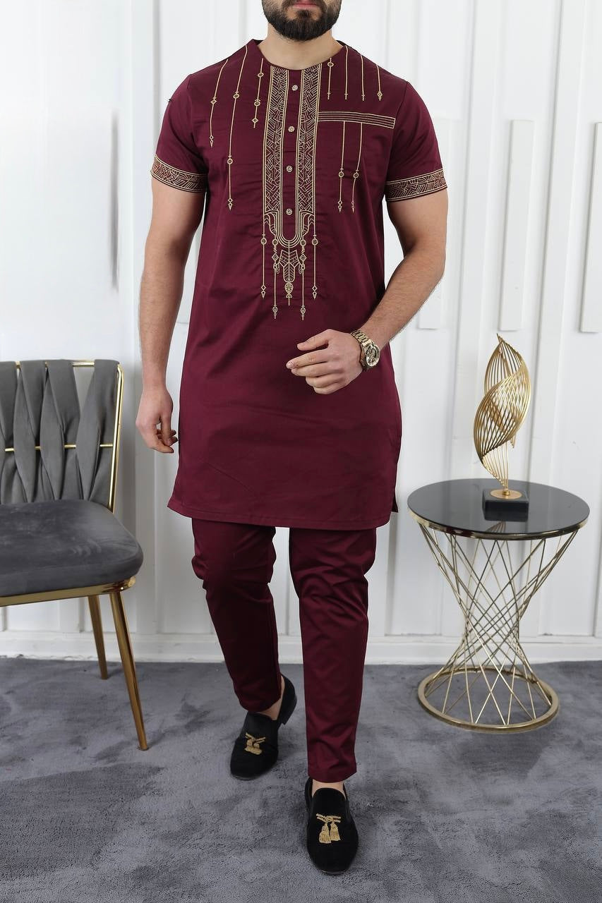 African Men's Clothing, Cotton Embroidered Short Sleeve Shirt Pants, Nigerian Wedding Guests Outfit, Groomsmen Suit, Nigerian Buba Sokoto