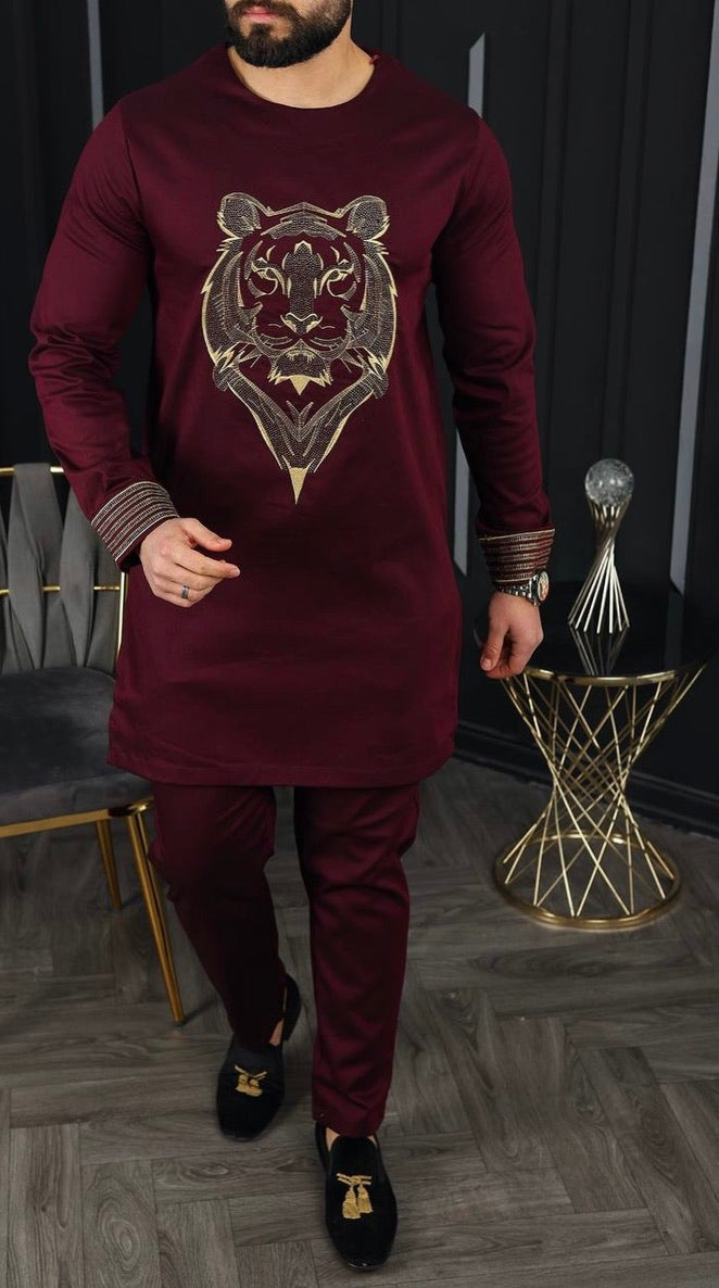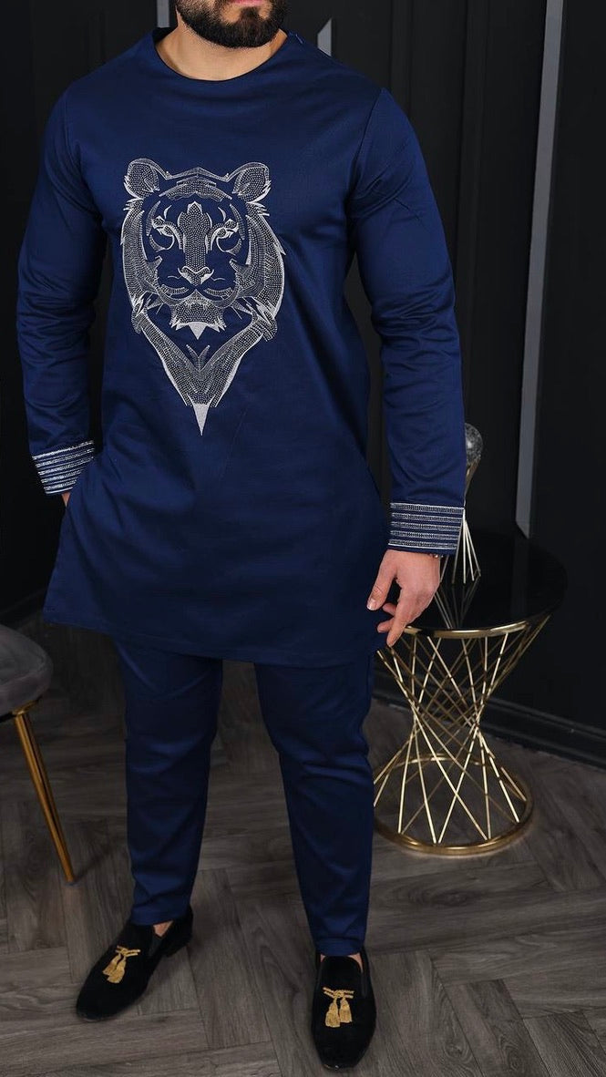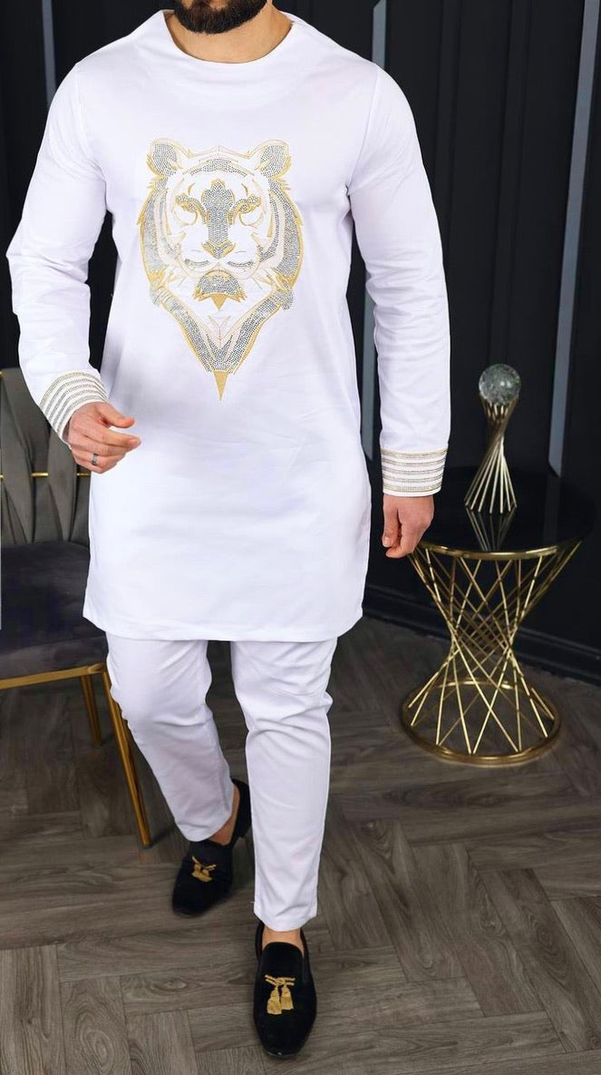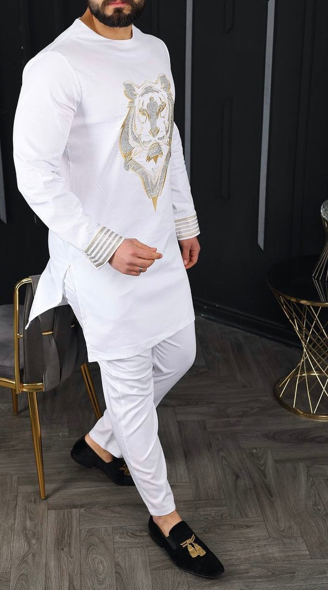 African Men's Outfit Embellished Embroidered Shirt Pants Cotton