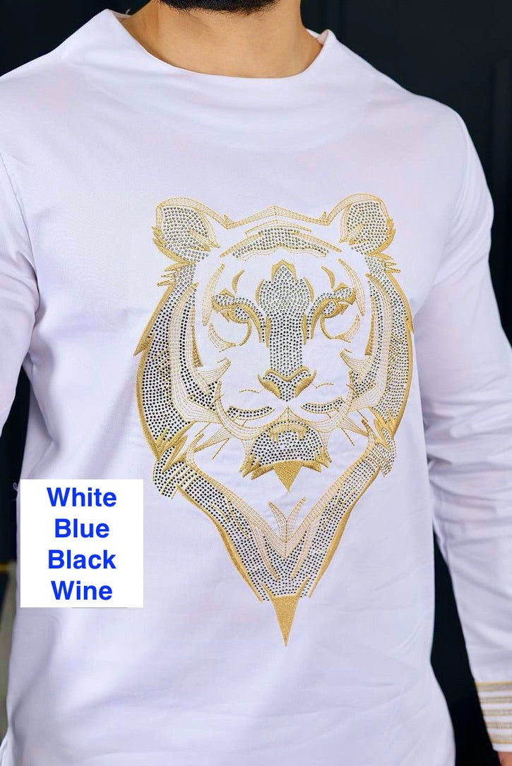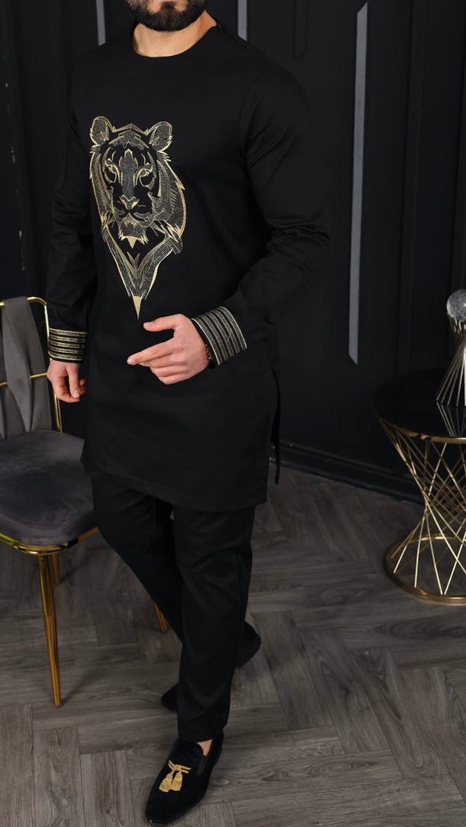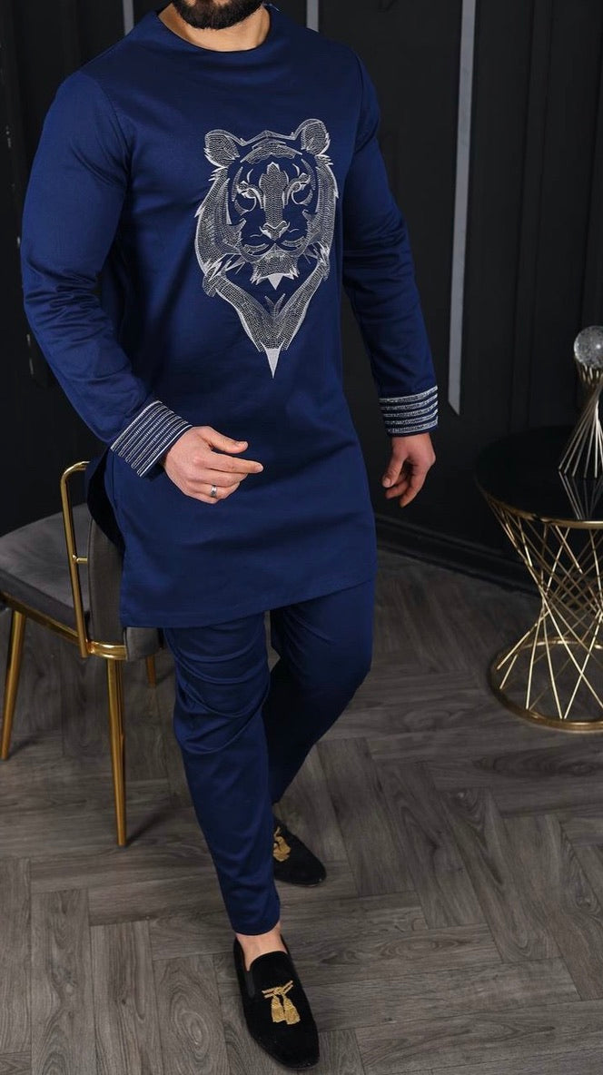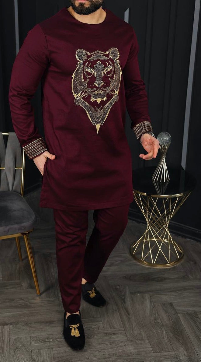African Men's Outfit Embellished Embroidered Shirt Pants Cotton