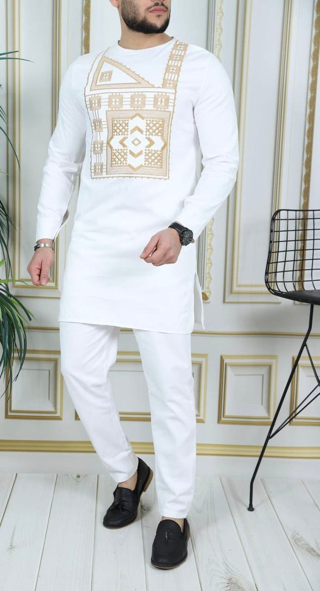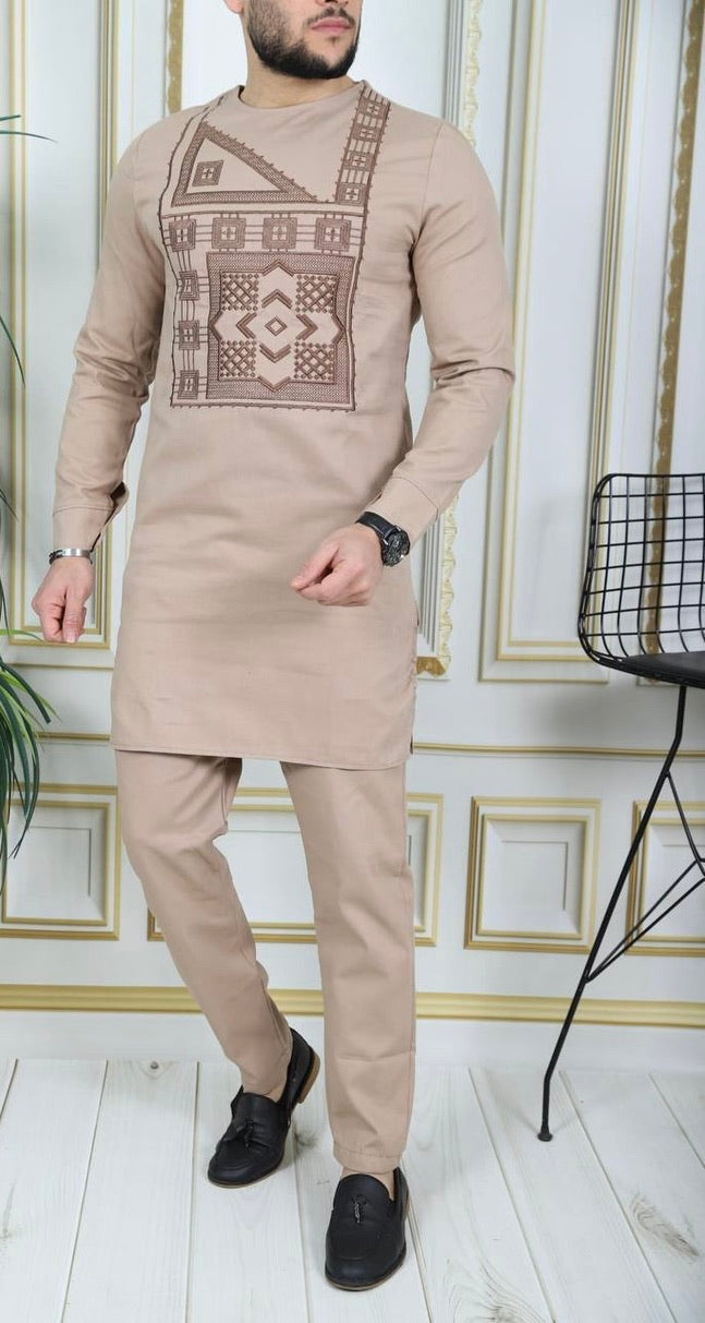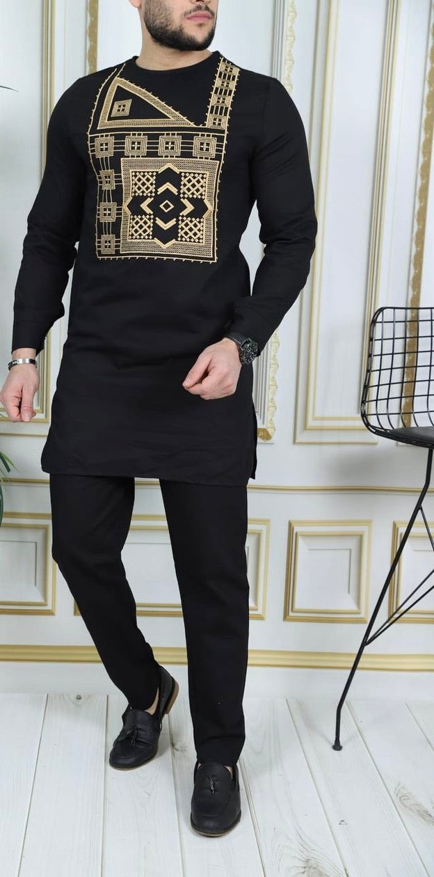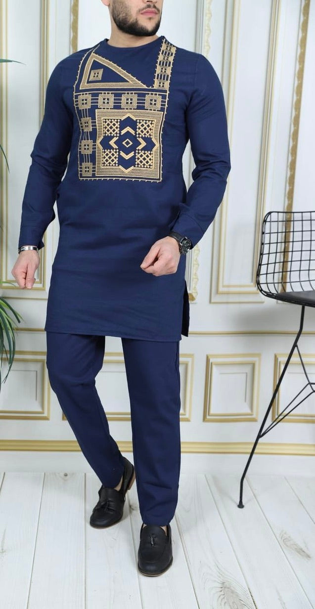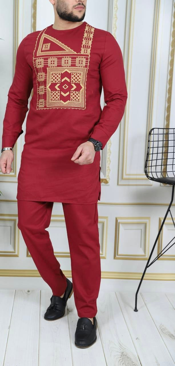 African Men's Clothing Embroidered Shirt Pants Cotton