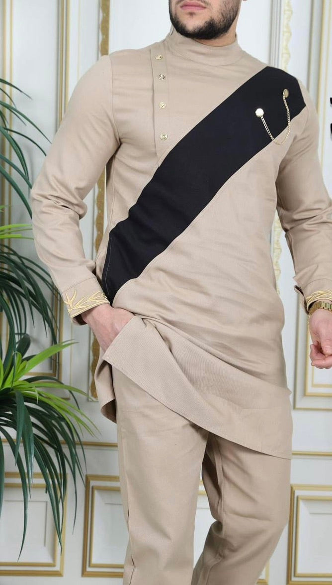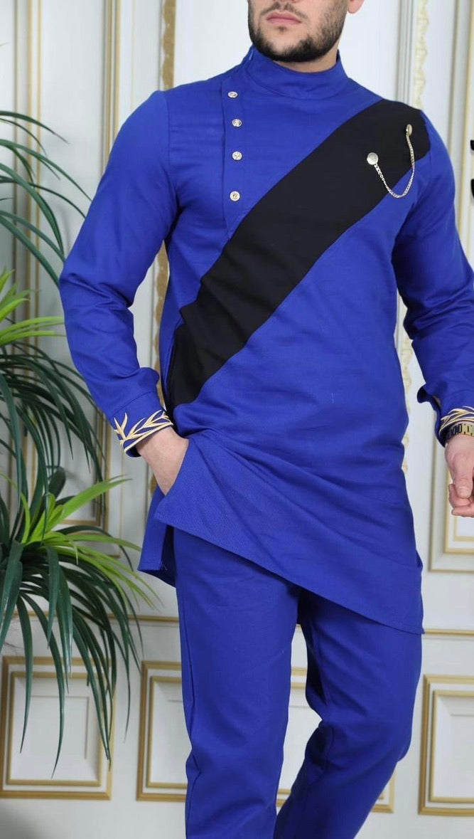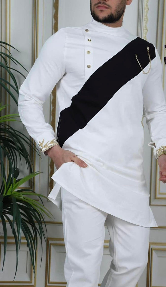 Be the life of the party with our African men's clothing collection. Made of comfortable cotton with an adjustable waist, this expertly crafted embroidered shirt and pants set is perfect for any African wedding guest, groom, or groomsmen, and Nigerian party outfit. Get ready to turn heads (and impress the ladies)!