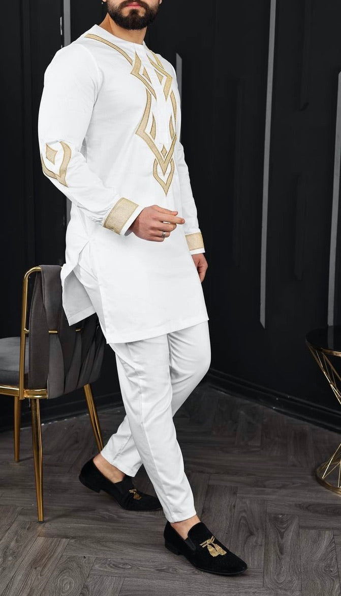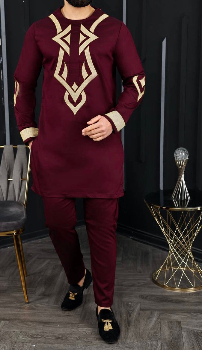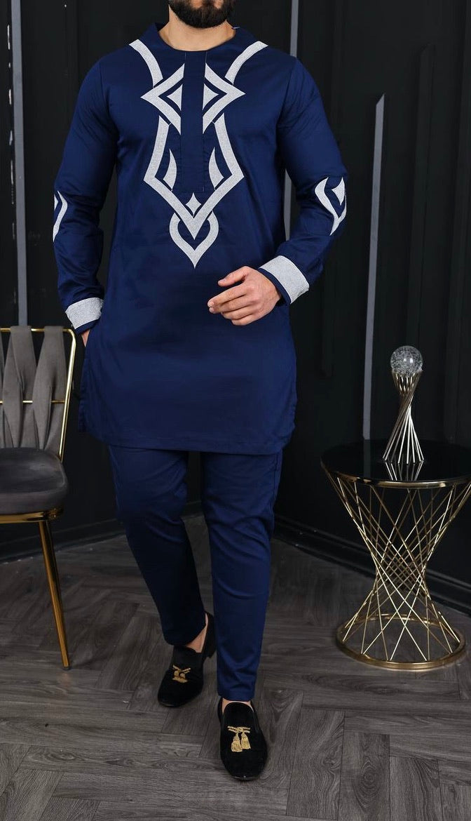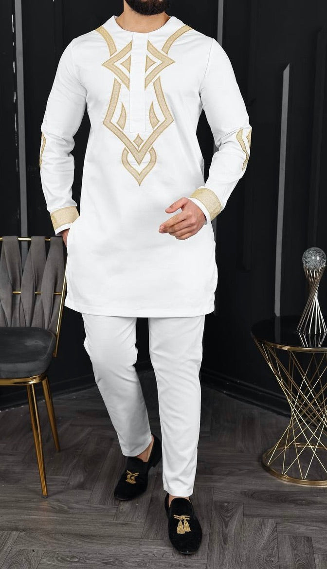 African Men's Clothing Embroidered Shirt Pants Cotton