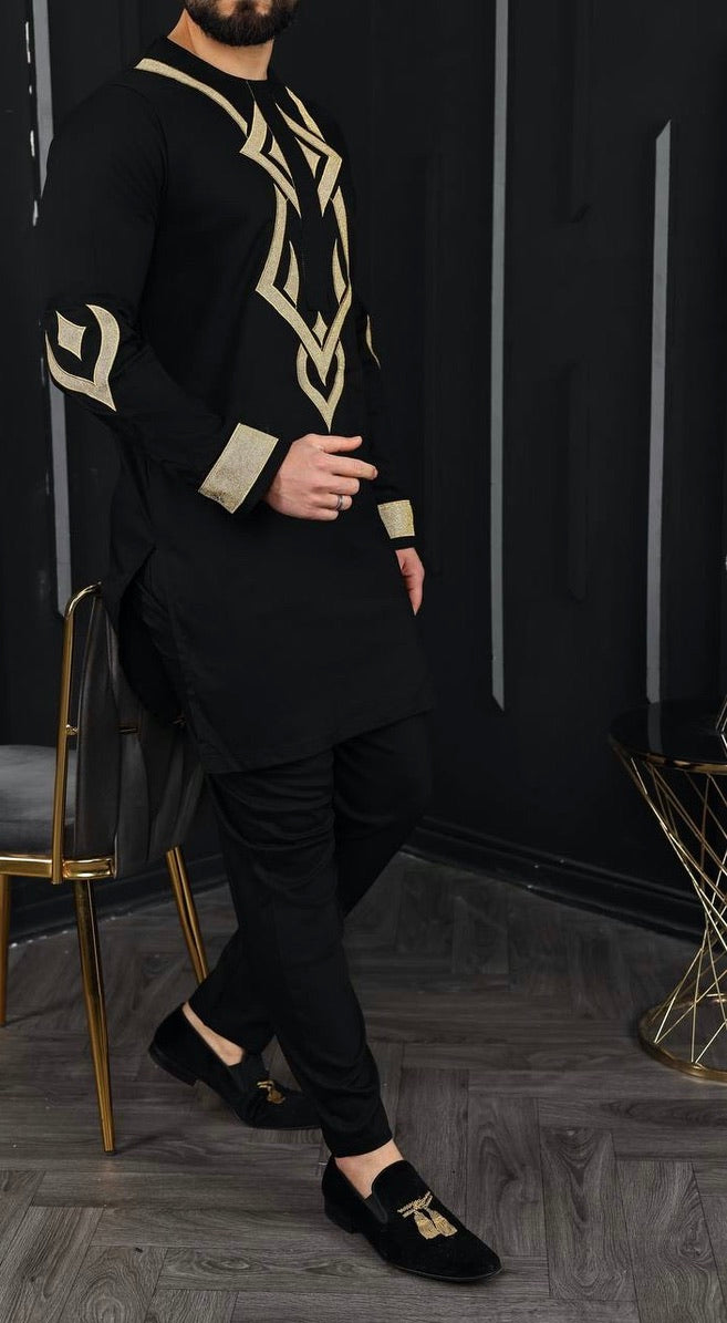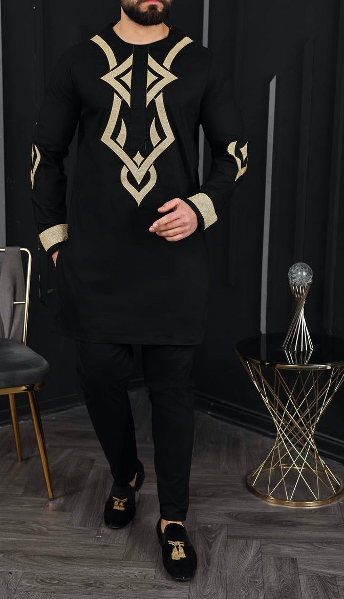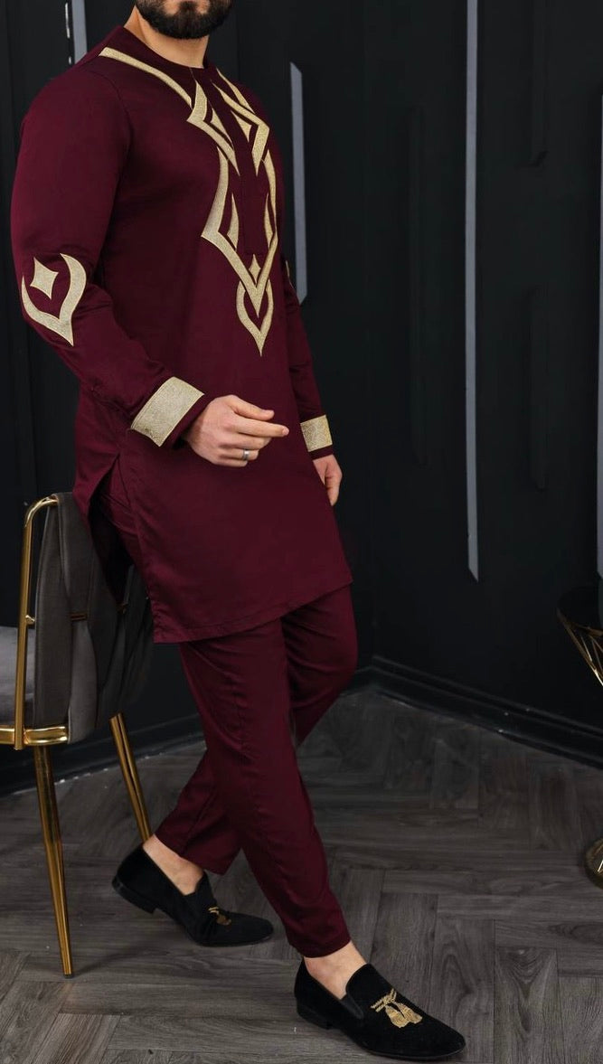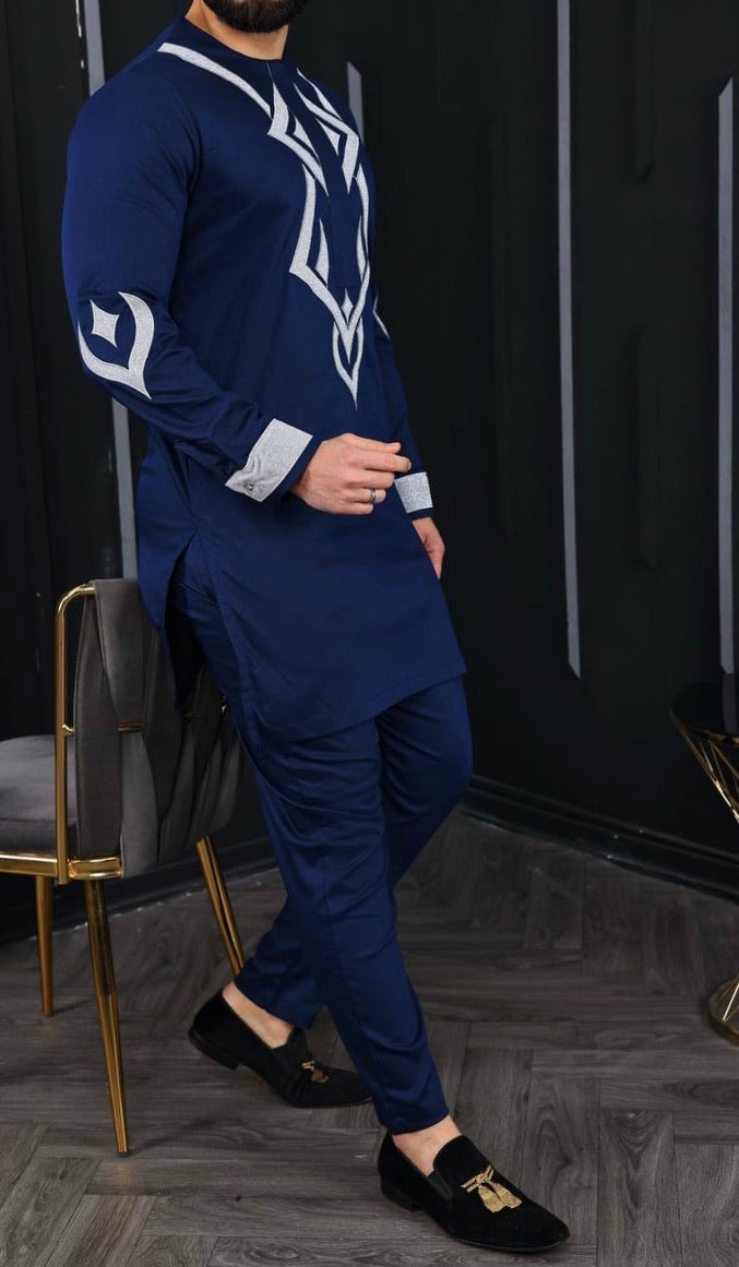African Men's Clothing Embroidered Shirt Pants Cotton