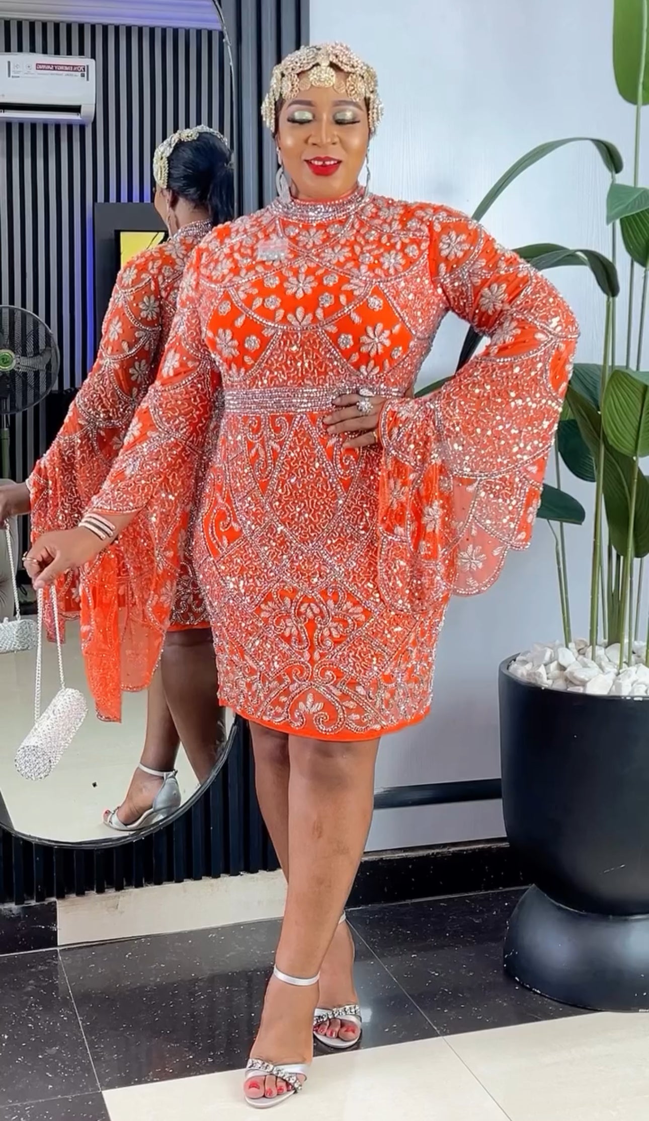 Beaded Wide Sleeve Midi Dress | Birthday Party Celebrant Wedding Guest Prom
