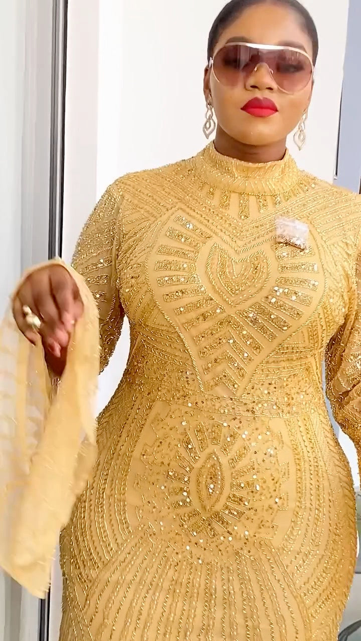 Bell Sleeve Beaded Embellished Gown | Celebrant Birthday Dress Wedding Guest