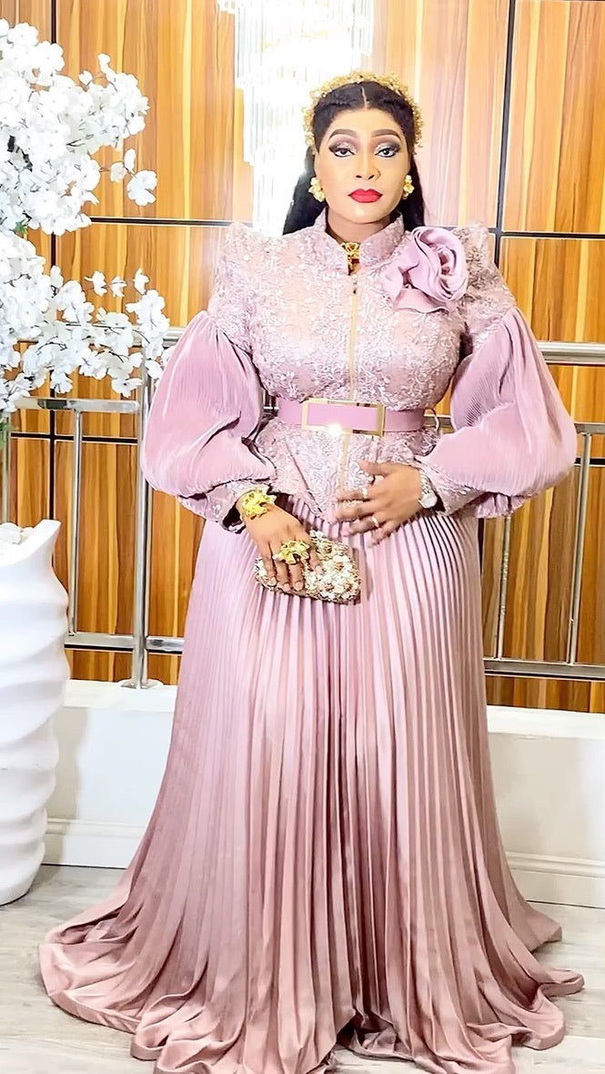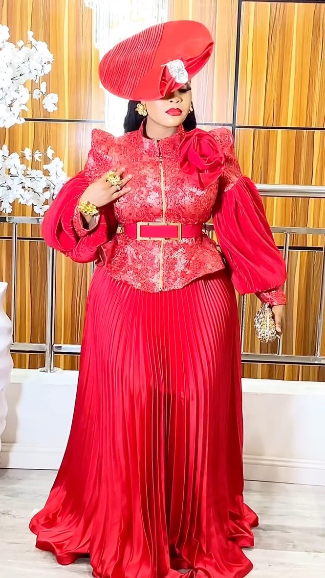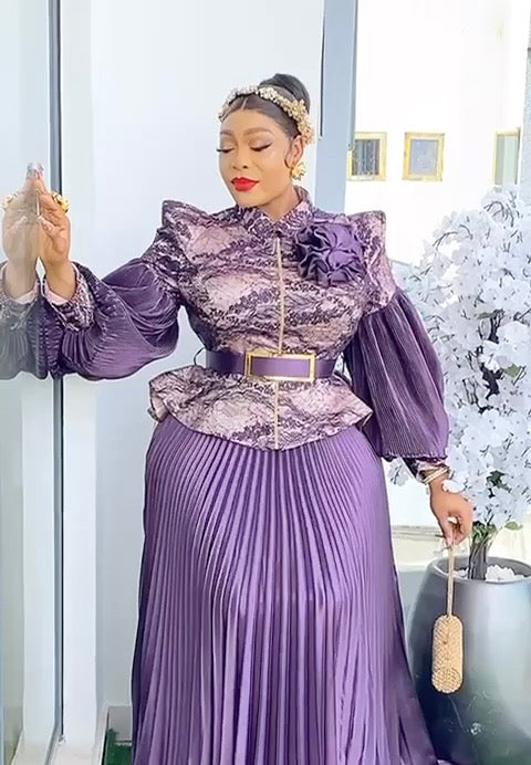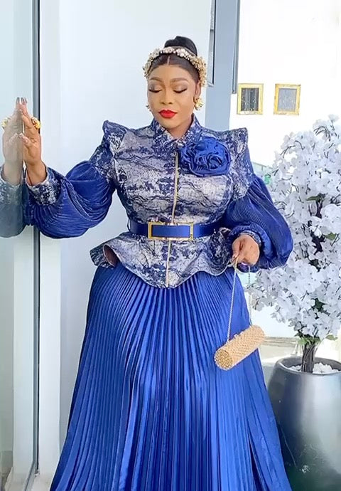 Bishop Sleeve Pleated A-Line Blouse and Skirt | Wedding Guest Birthday Party Gala