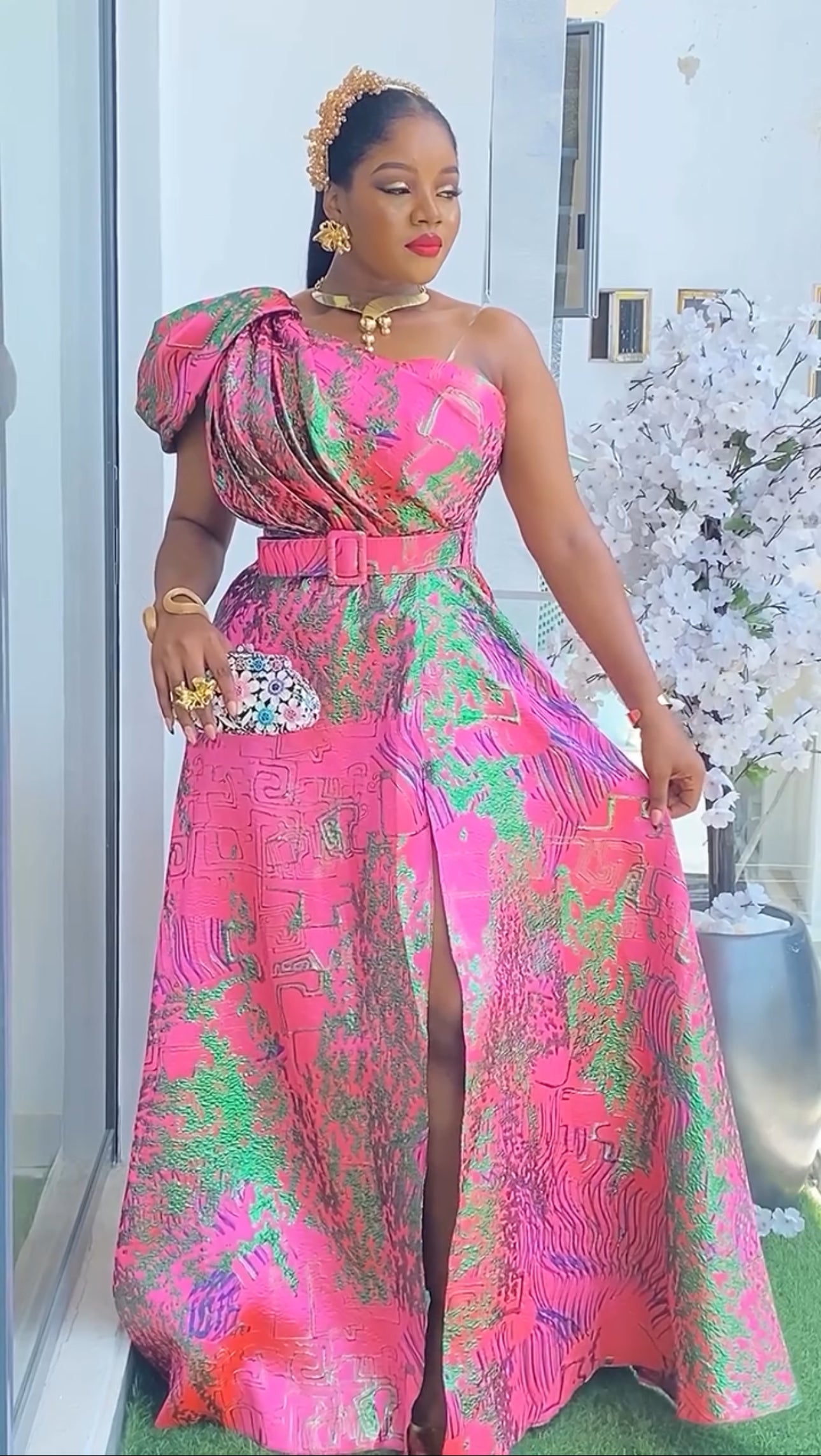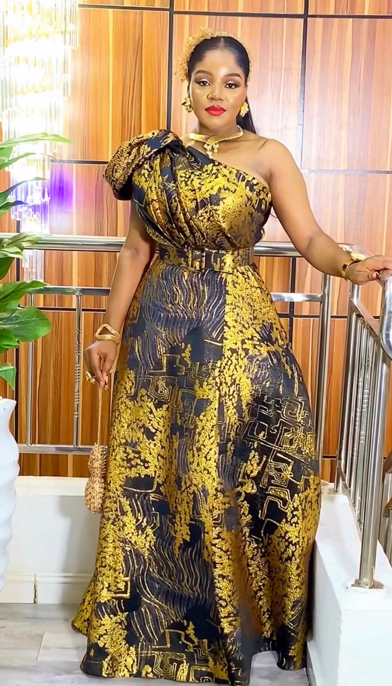 Black and Gold Brocade Plus Size Mother of The Bride One Shoulder A-Line Gown, Summer Wedding Guest Maxi Dress Front Slit, Cocktail Gala Party