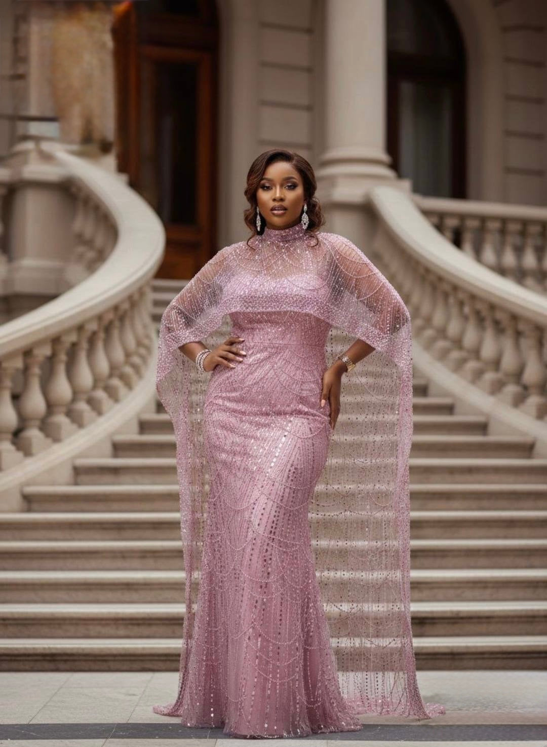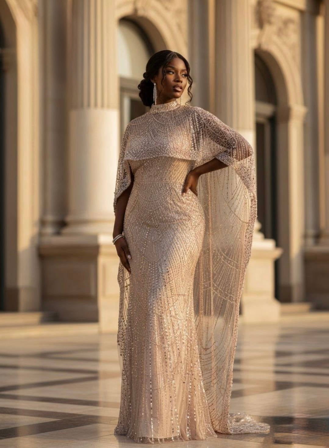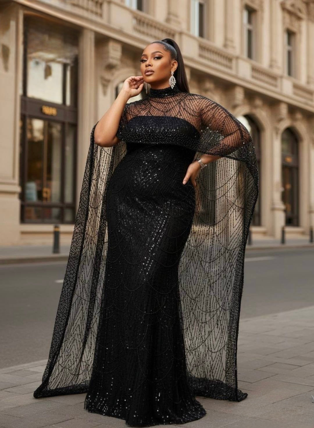 Black Embellished Cape Sleeve Maxi Dress: Wedding Guest Attire Birthday Party Mother of The Bride