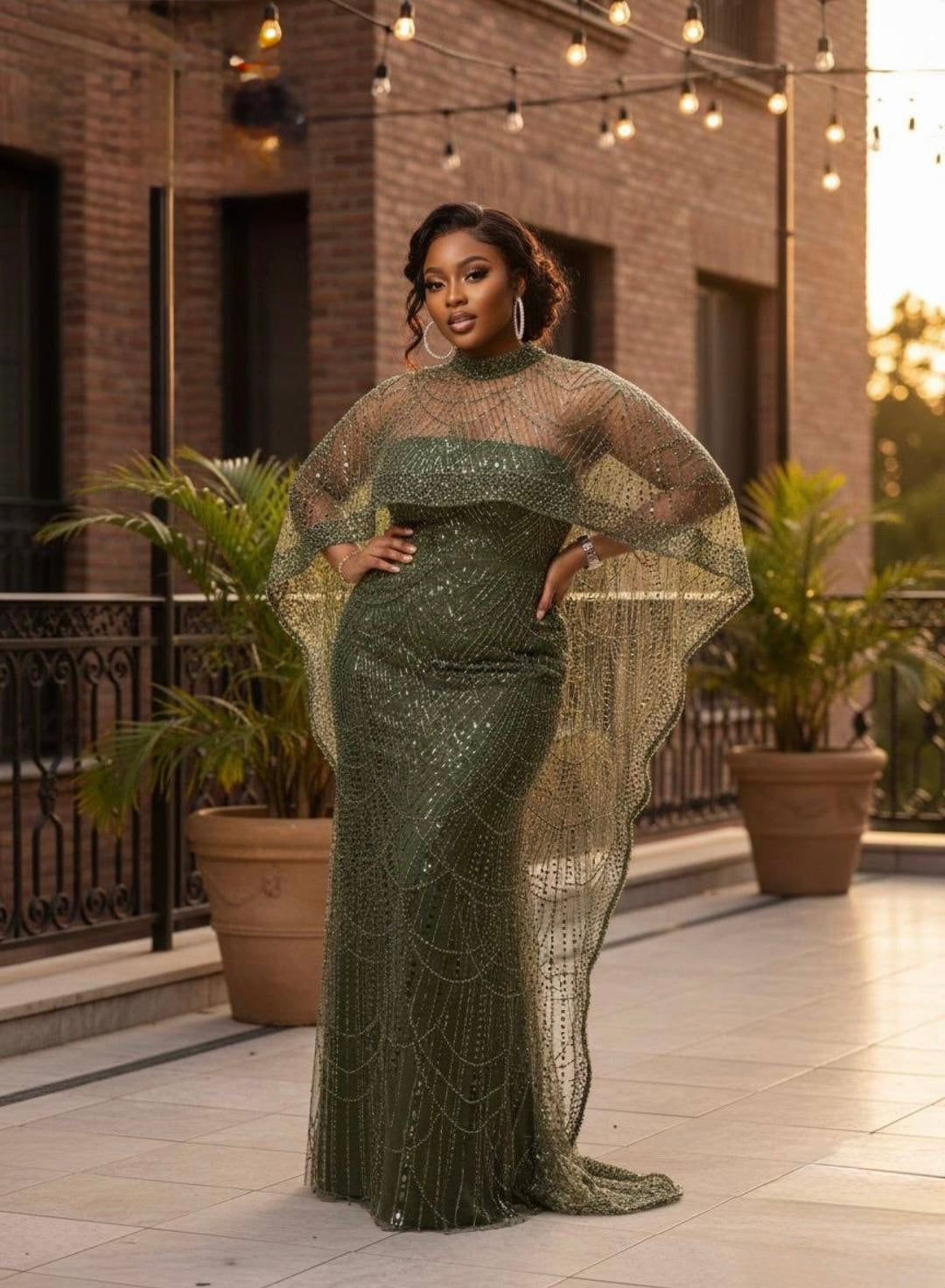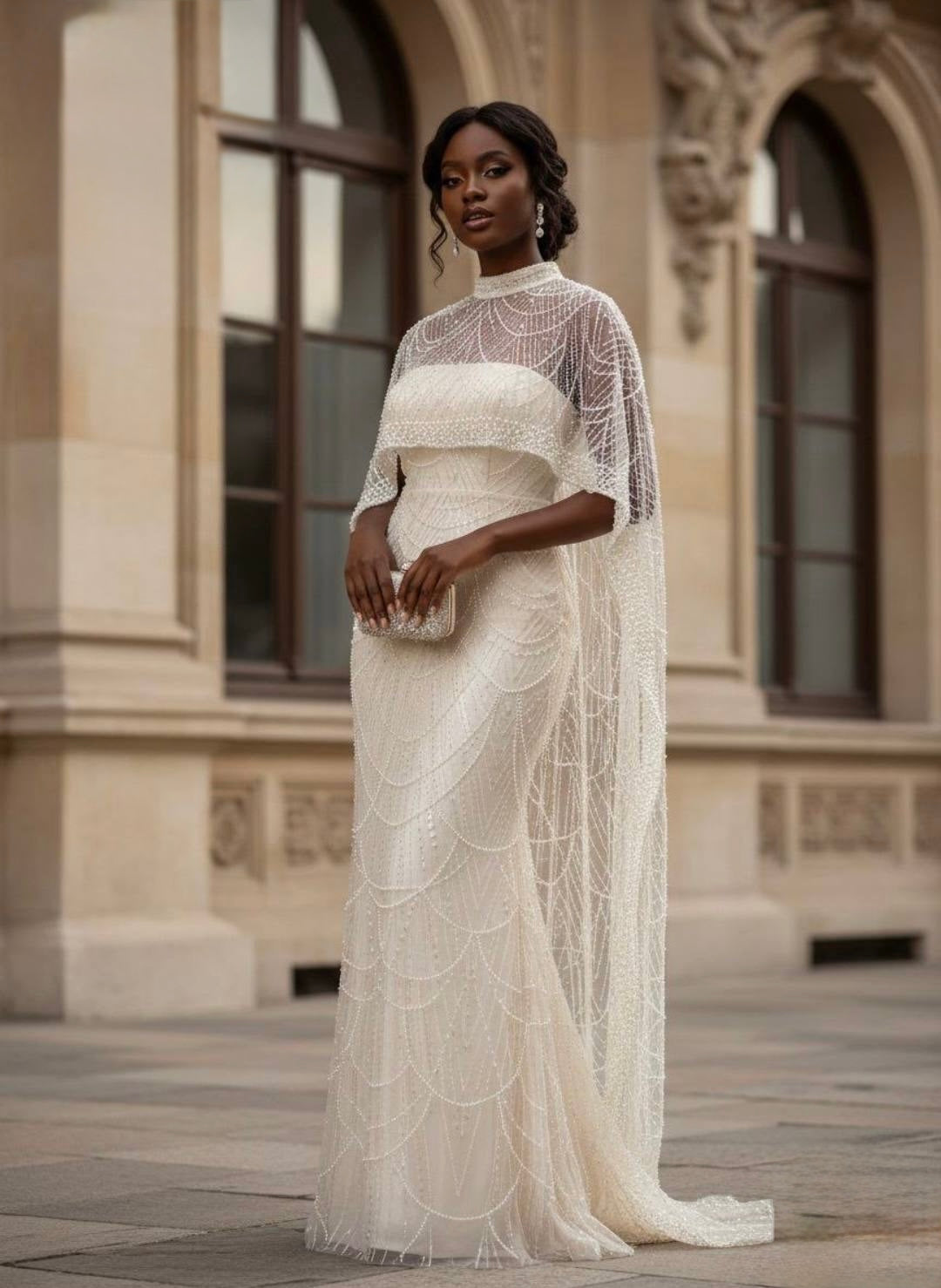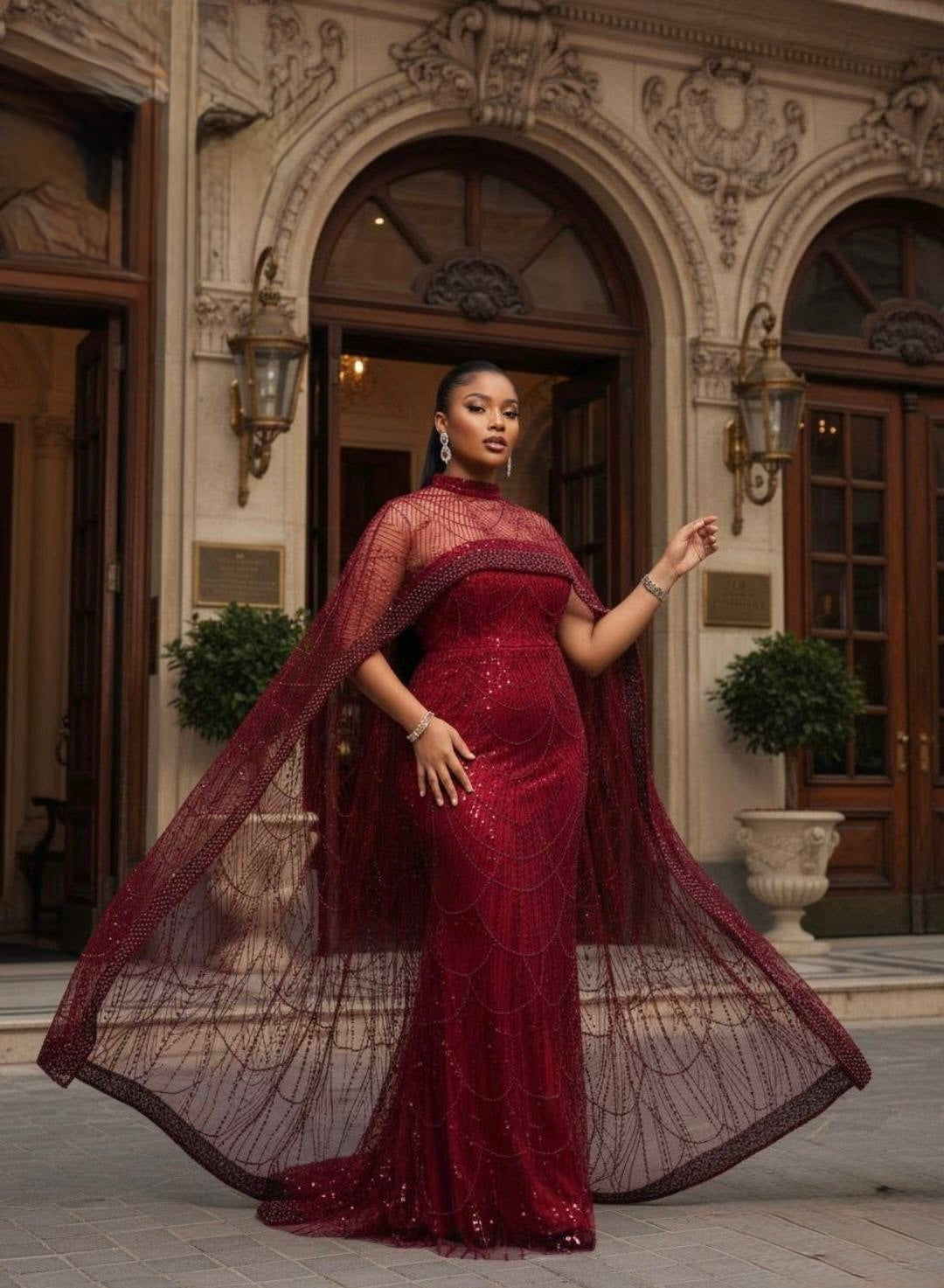 Black Embellished Cape Sleeve Maxi Dress: Wedding Guest Attire Birthday Party Mother of The Bride