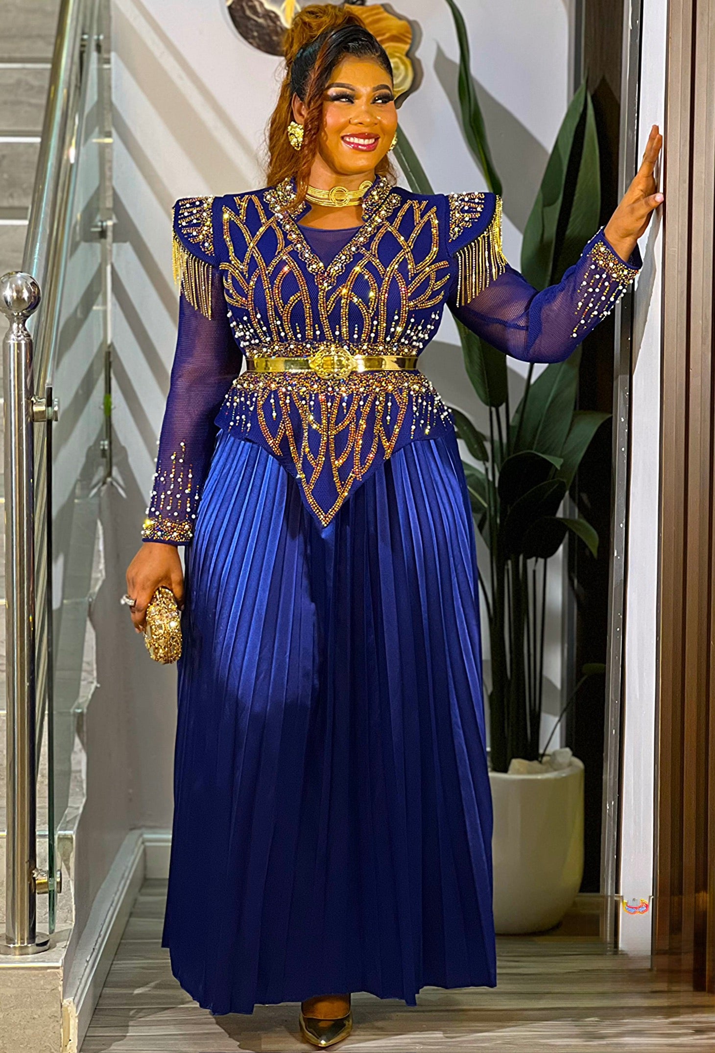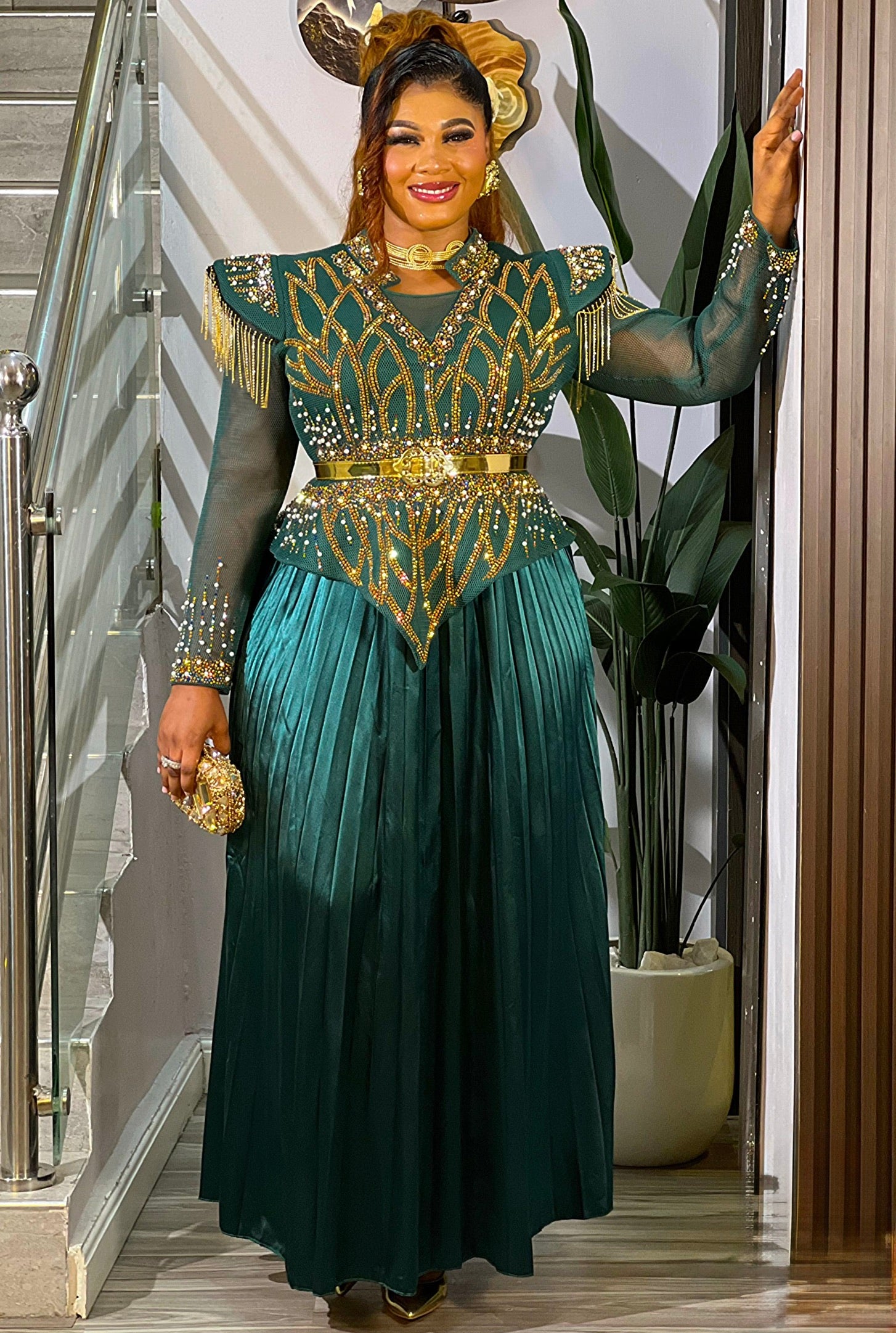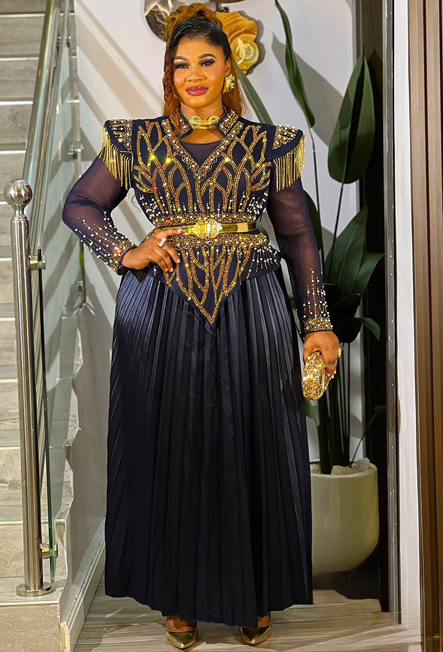 Black Embellished Pleated Maxi Dress: Mother of The Bride Photoshoot Anniversary