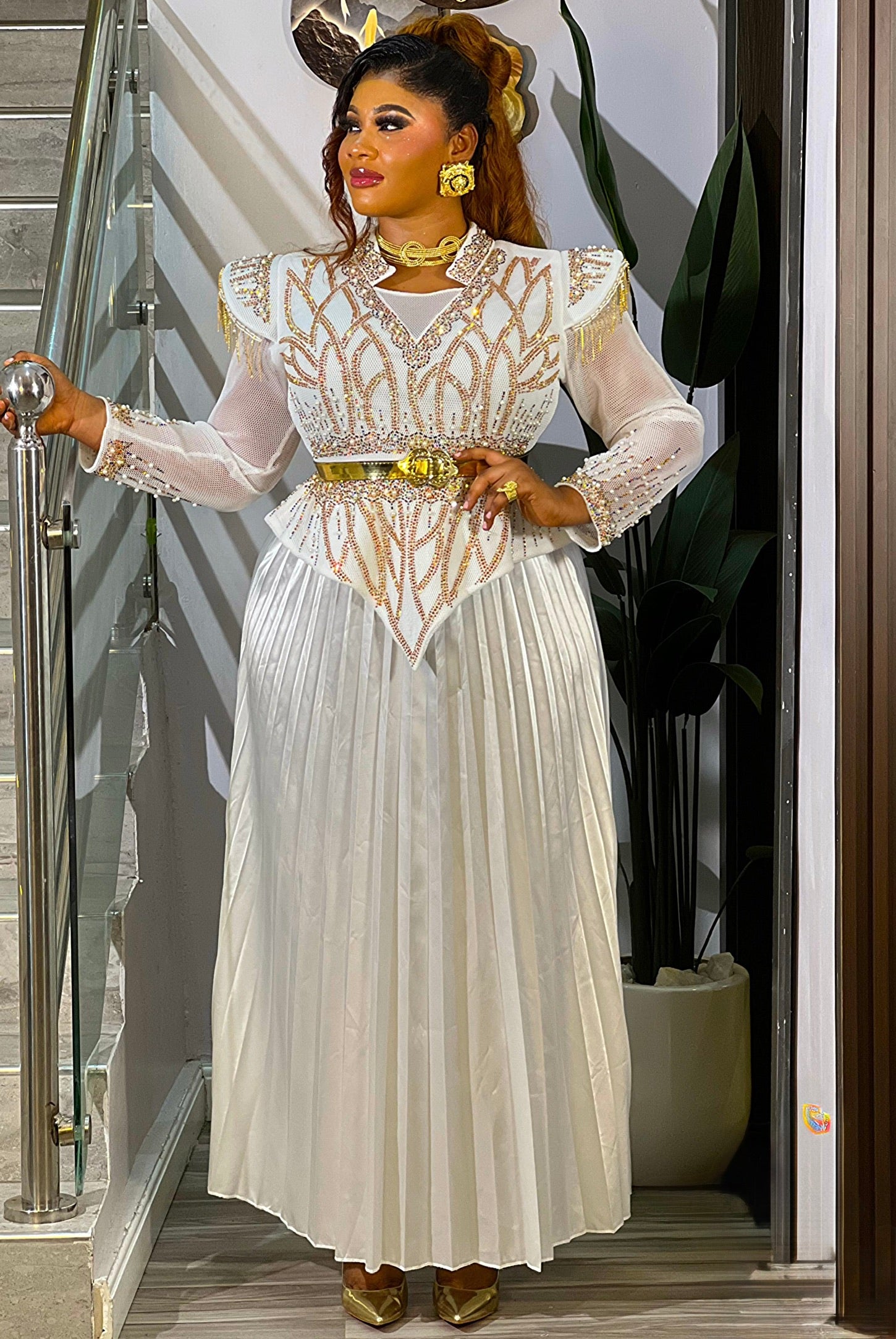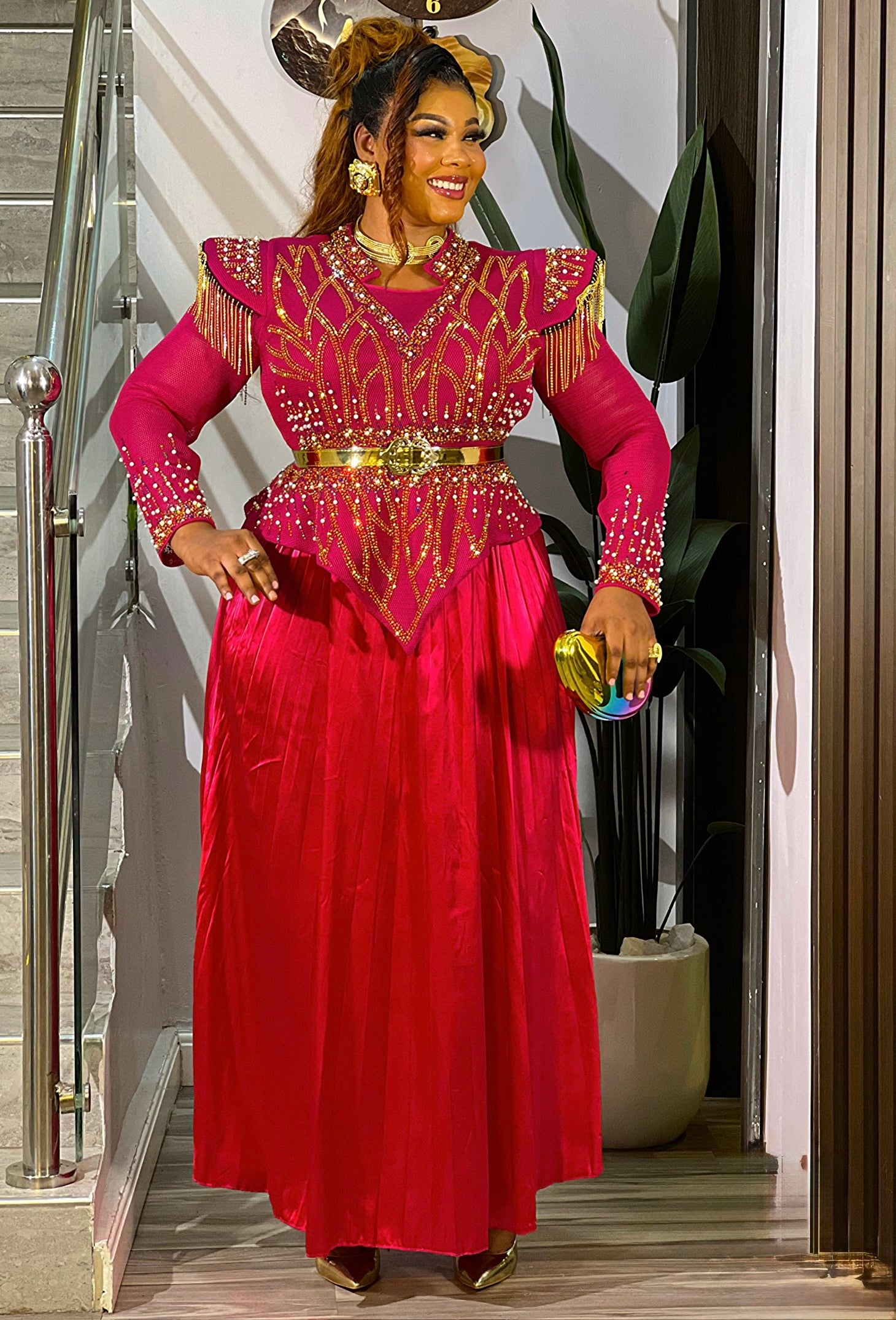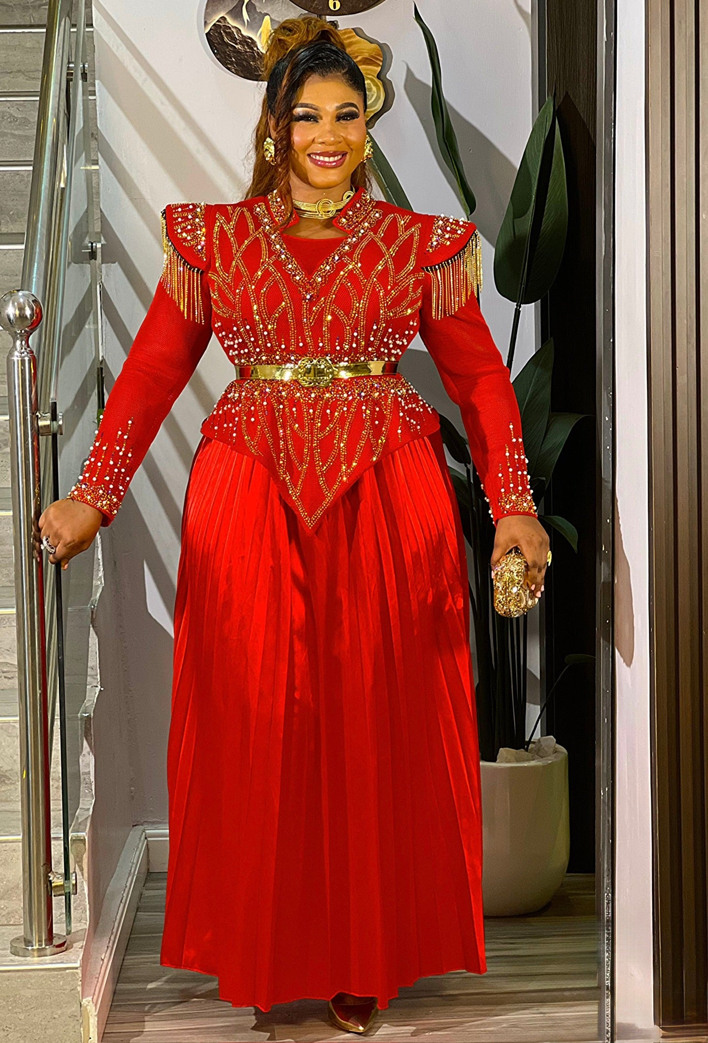 Black Embellished Pleated Maxi Dress: Mother of The Bride Photoshoot Anniversary