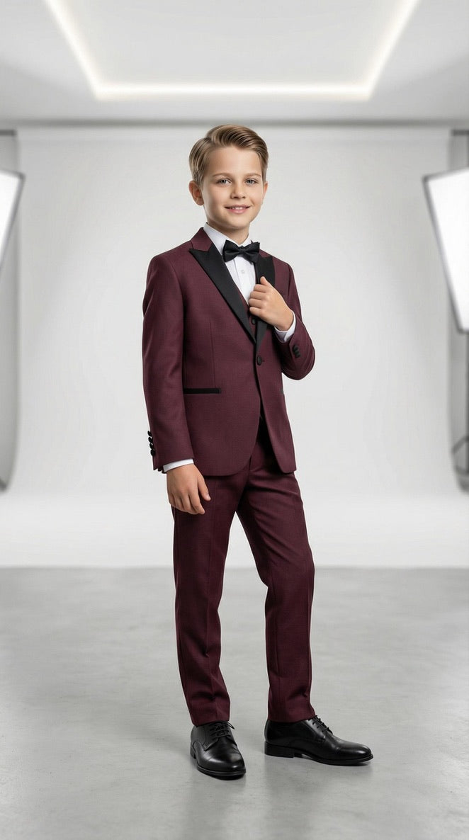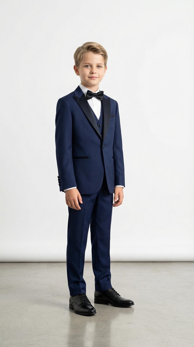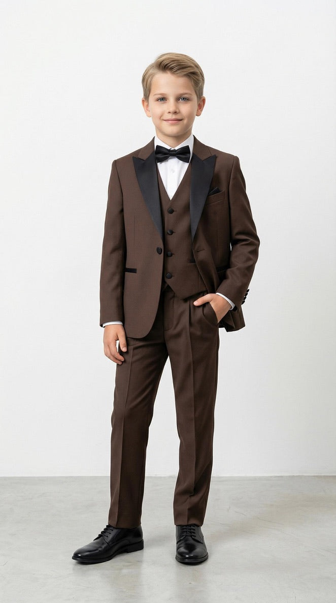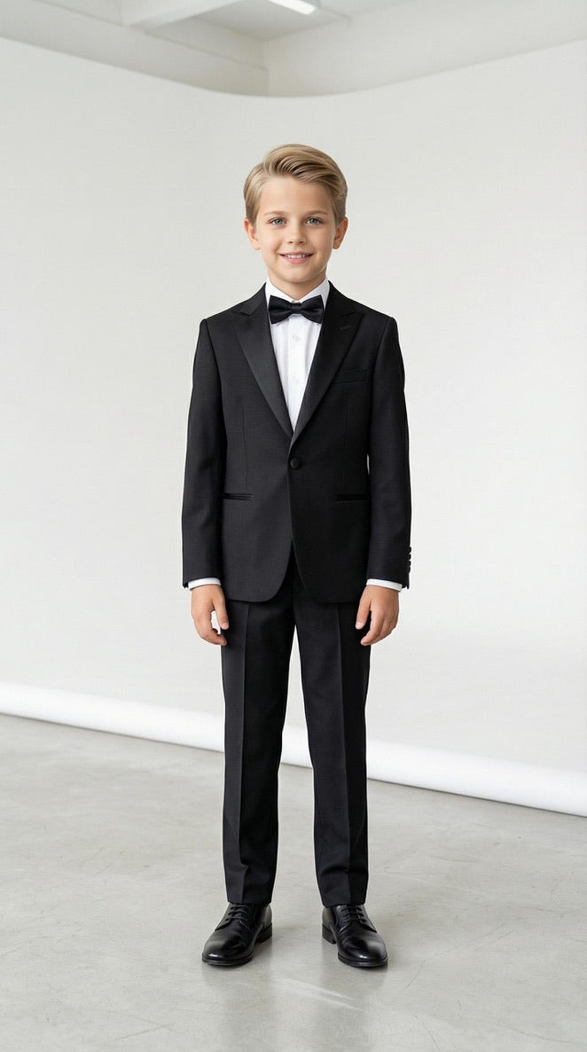 Boys' White Slim Fit Tuxedo Suit, 5-Piece Set: Wedding Ring Bearer Outfit Birthday Photoshoot Black Tie Communion Graduation Formal Special Occasion