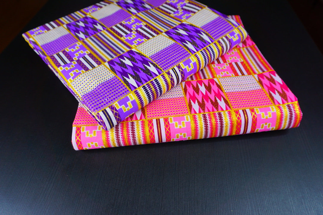 Kente cotton print woven with a sparkly metallic gold accent covering the entire fabric, thereby creating a luminous jaw-dropping shine. The metallic gold accent will give your sewing project the glitz and glamour look, while the cotton will provide the smooth, cozy soft feel to your skin.