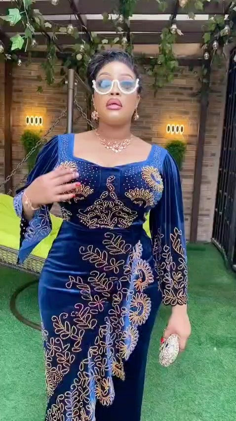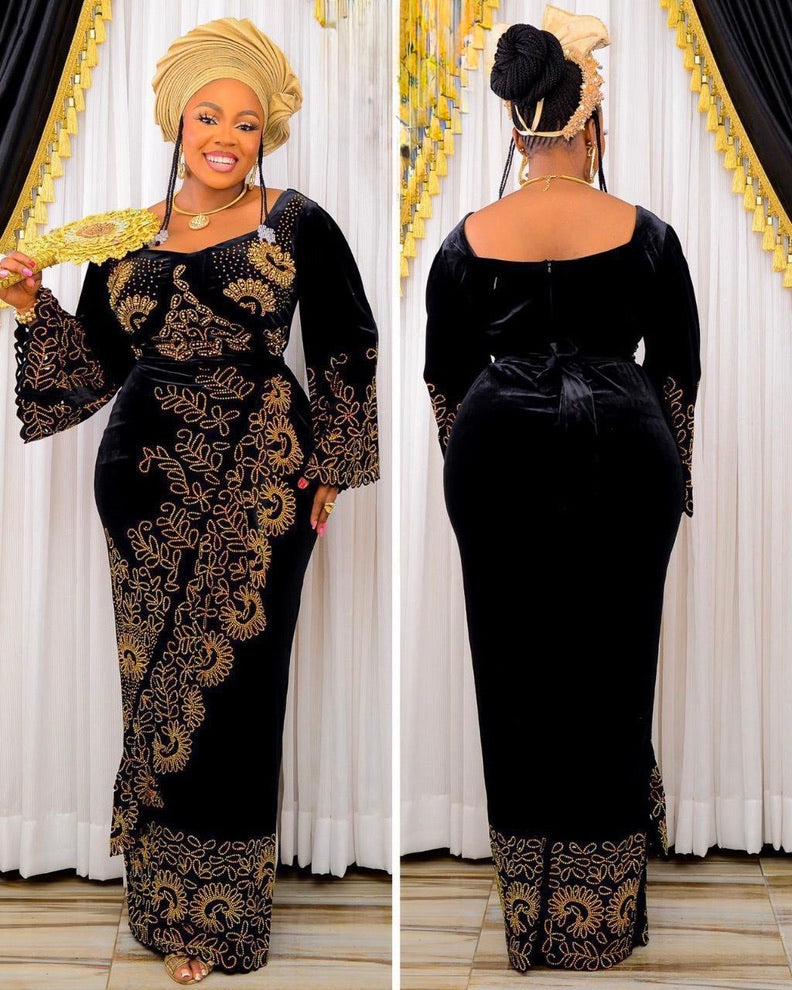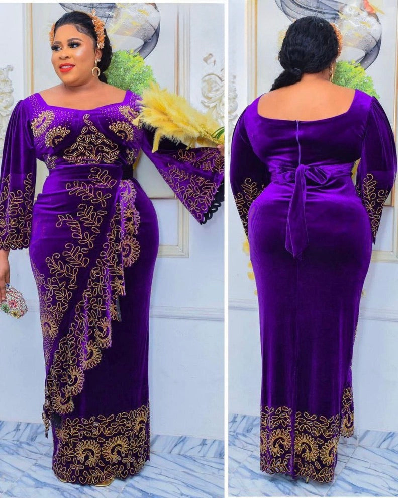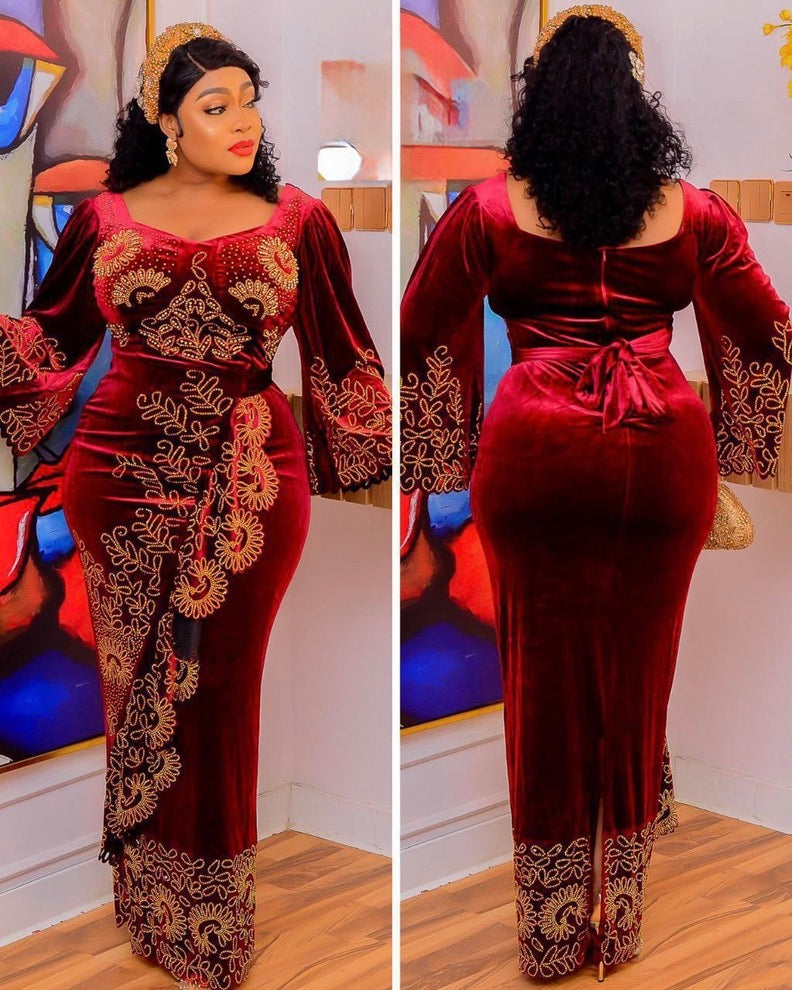 Burgundy Velvet Embellished Ruffle Dress - African Birthday Party Attire Nigerian Wedding Guest Engagement Ceremony