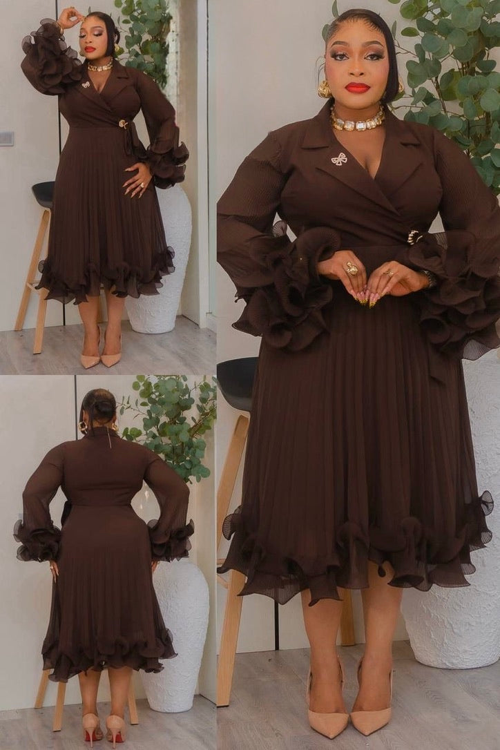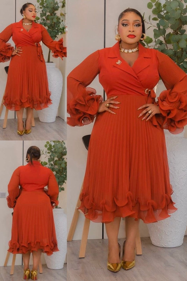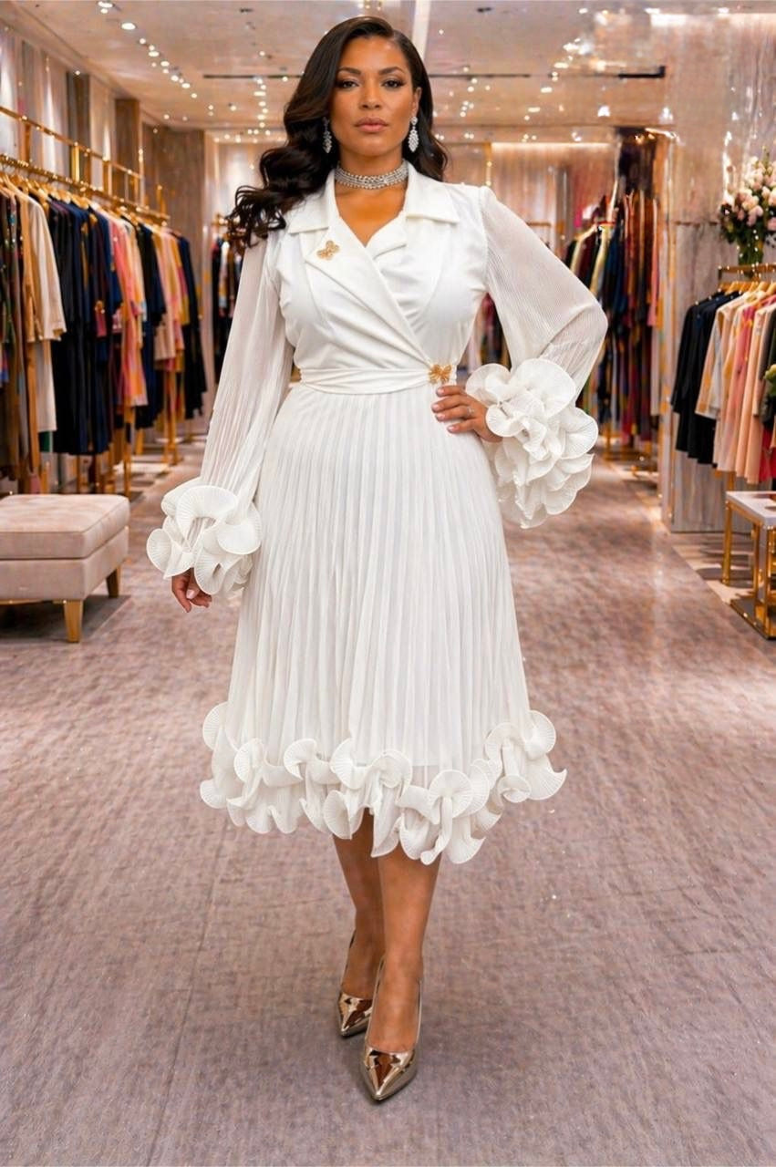 Dramatic Ruffle Sleeve Pleated Twirl Skater Midi Dress: White Summer Wedding Guest Outfit Engagement Ceremony Mother of The Bride