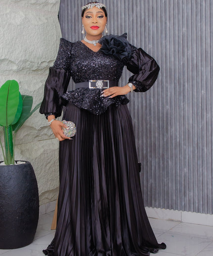 Dramatic Shoulder Sequin Maxi Dress | Wedding Guest Gala Birthday Party Mother of The Bride