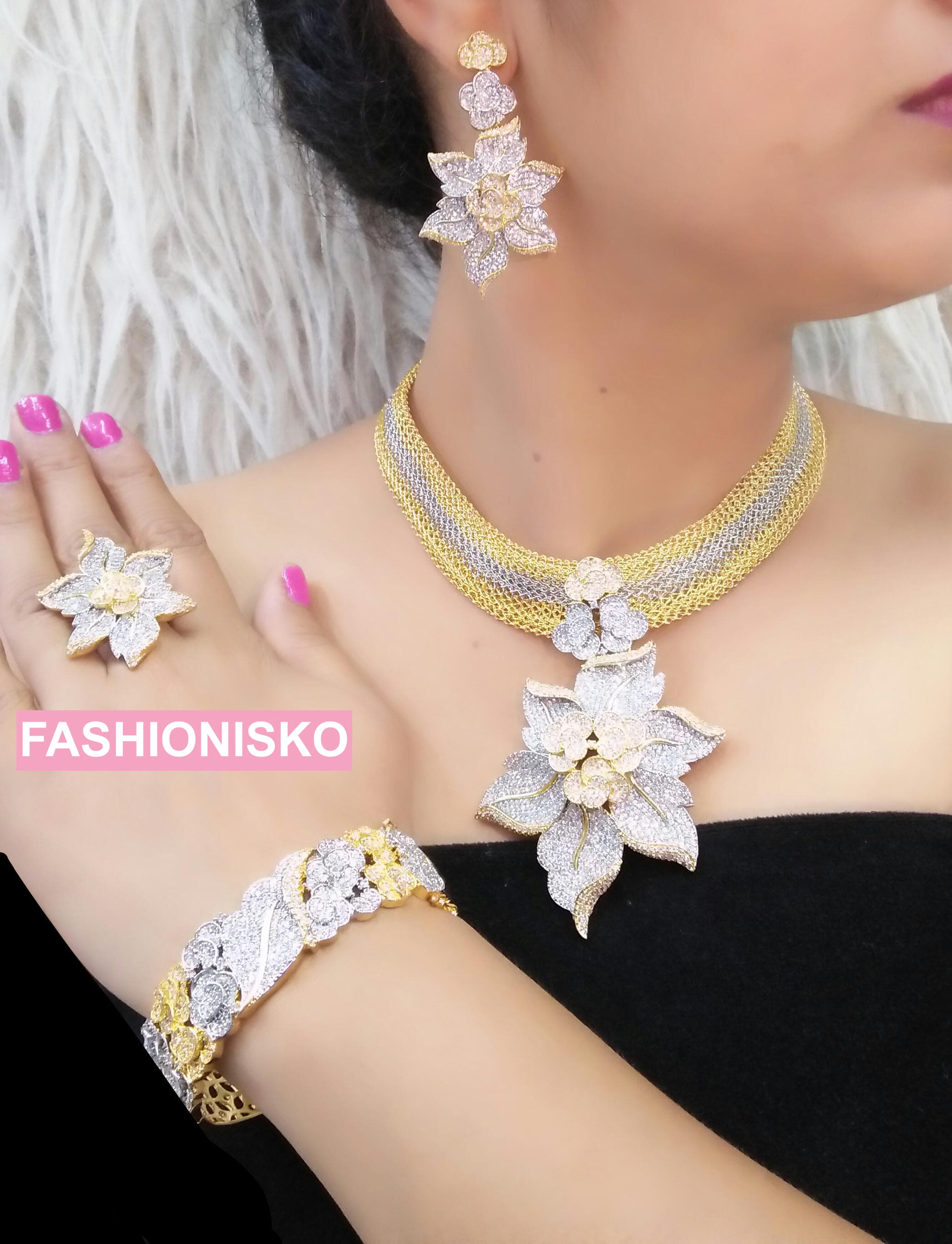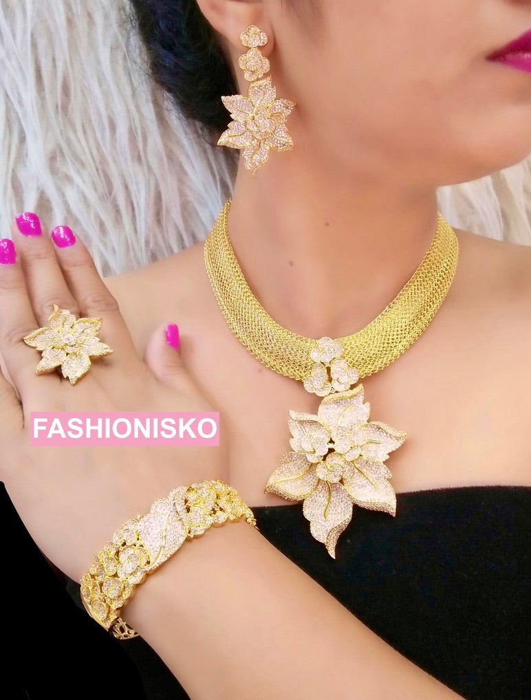 Dubai Gold Plated Jewelry Set Cubic Zirconia | Bridal Jewelry, Wedding Guest, Mother of The Bride Jewelry, Birthday Party Celebrant