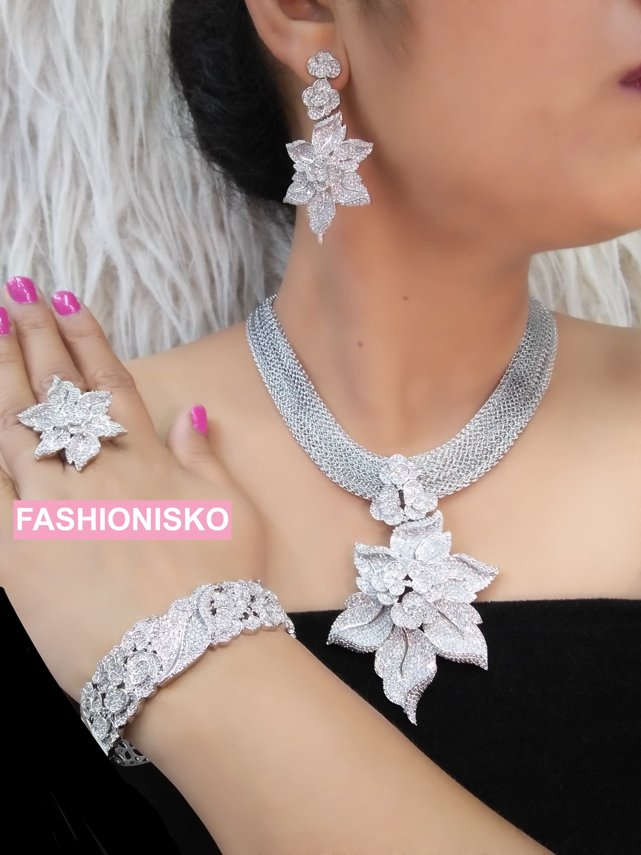Matching Jewelry Set: necklace, earrings, bracelet, resizable ring