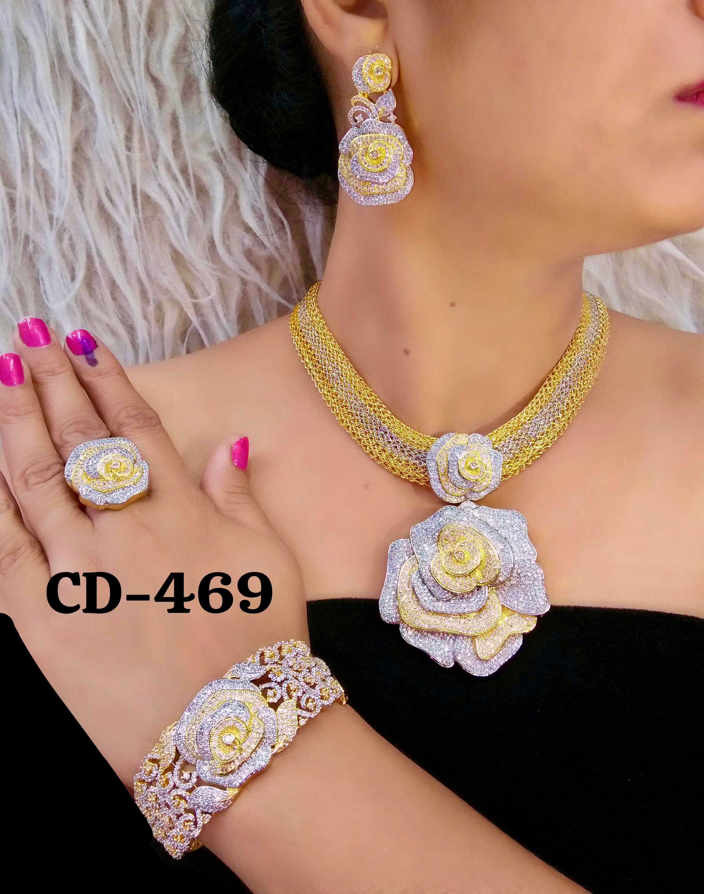 Dubai Gold Plated Jewelry Set Cubic Zirconia | Bridal Jewelry, Wedding Guest, Mother of The Bride Jewelry, Birthday Party Celebrant