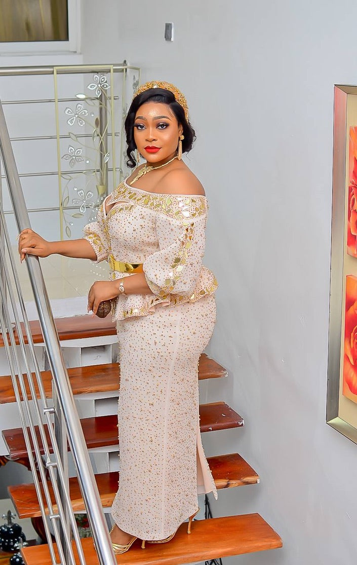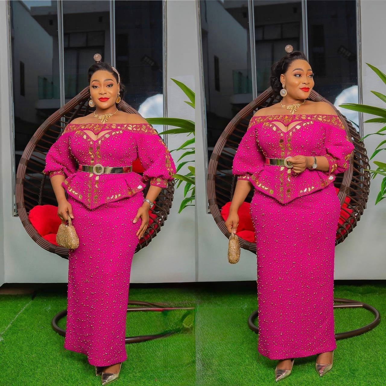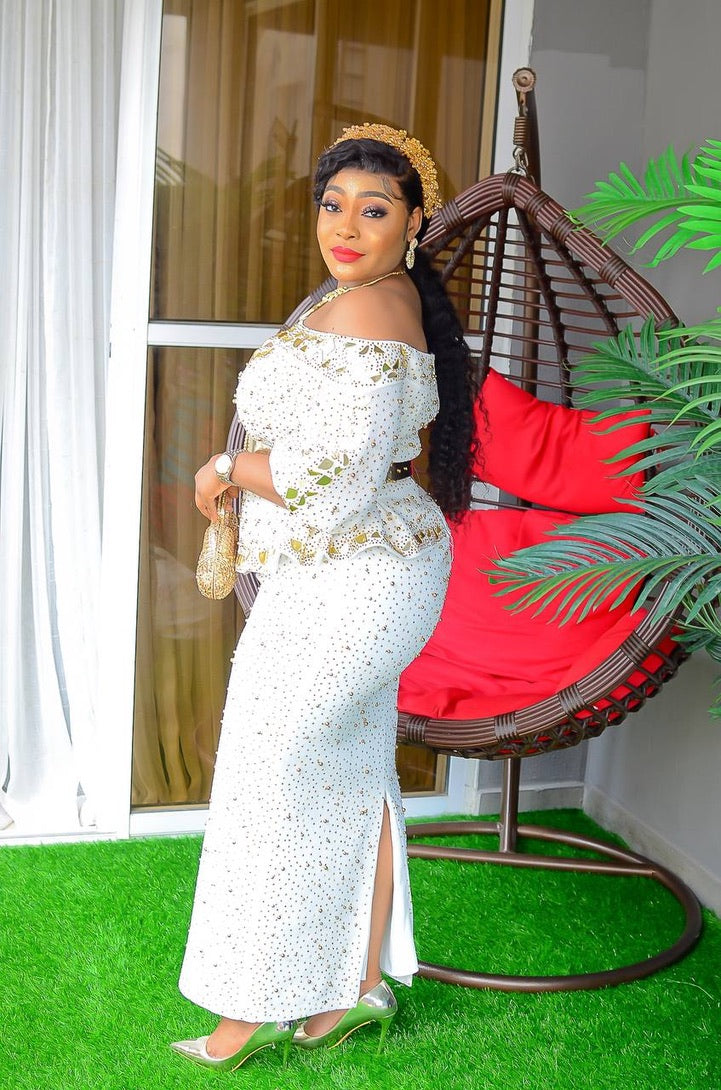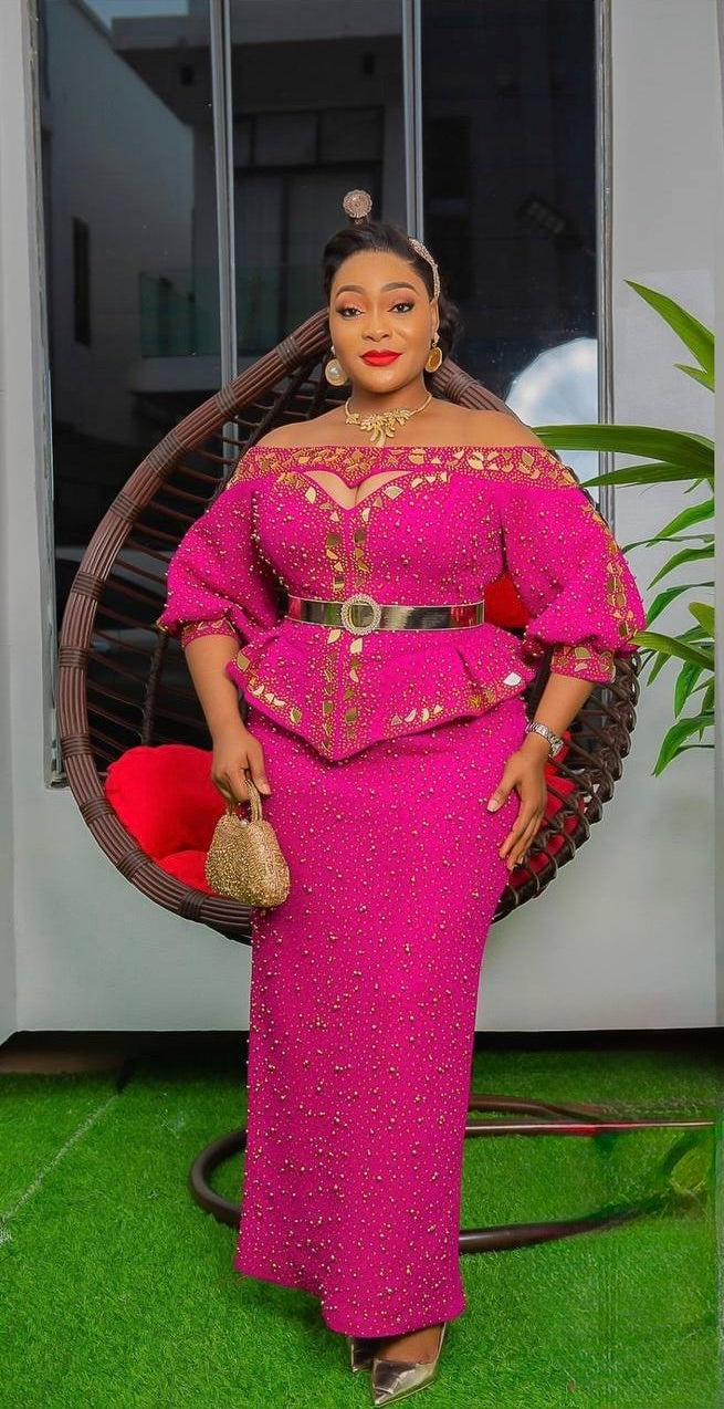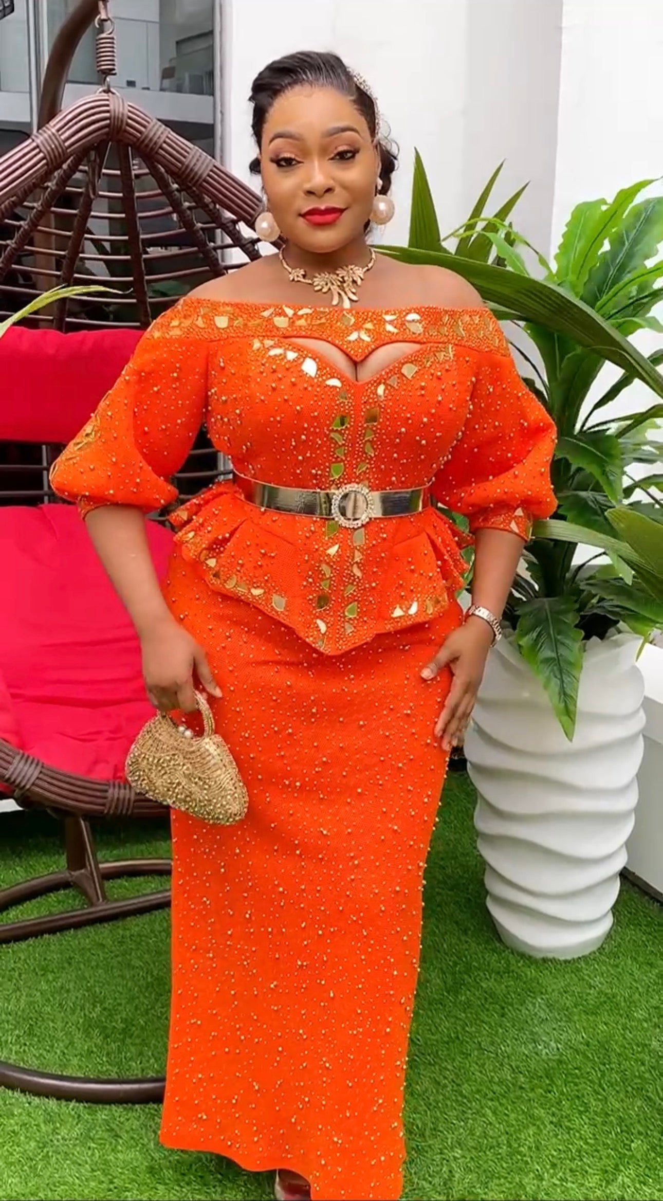 Orange Off-The-Shoulder Embellished Peplum Top & Skirt 2 Piece Set for Wedding Guest Mother of The Bride Birthday Party Gala Cocktail Anniversary