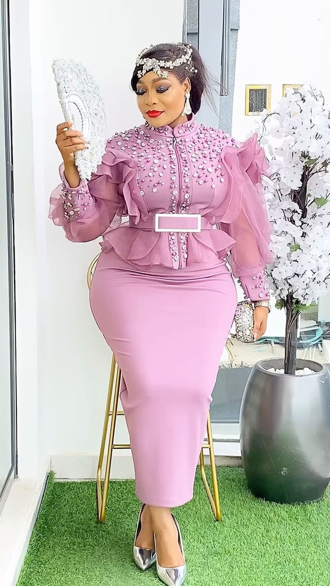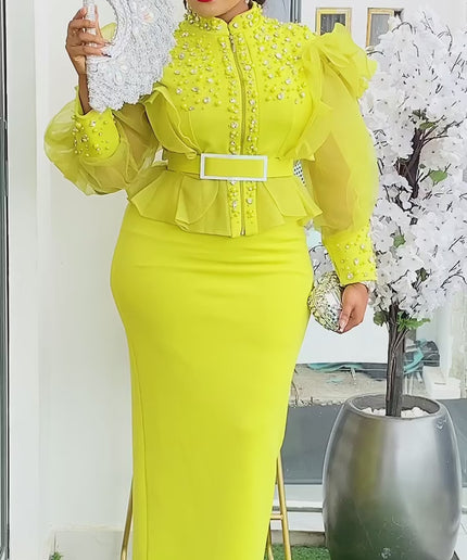 Fancy Ruffled Sleeve Embellished Top and Skirt | Wedding Guest Graduation Birthday Party