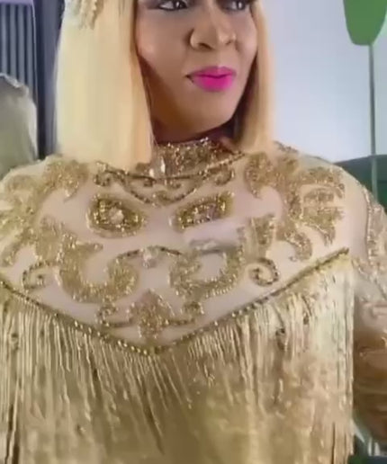 Gold Fringe Crystal Embellished Maxi Dress | Party Wedding Prom Mother of The Bride Celebrant