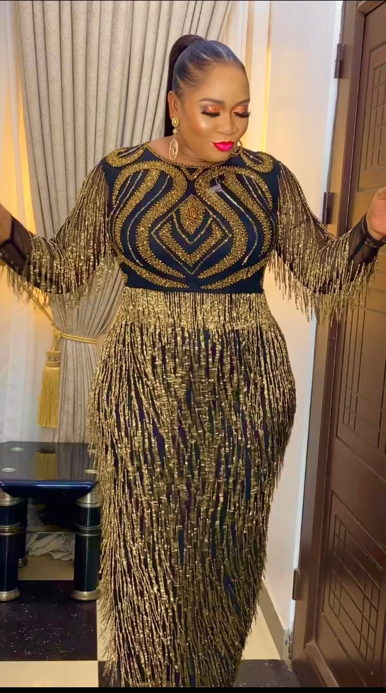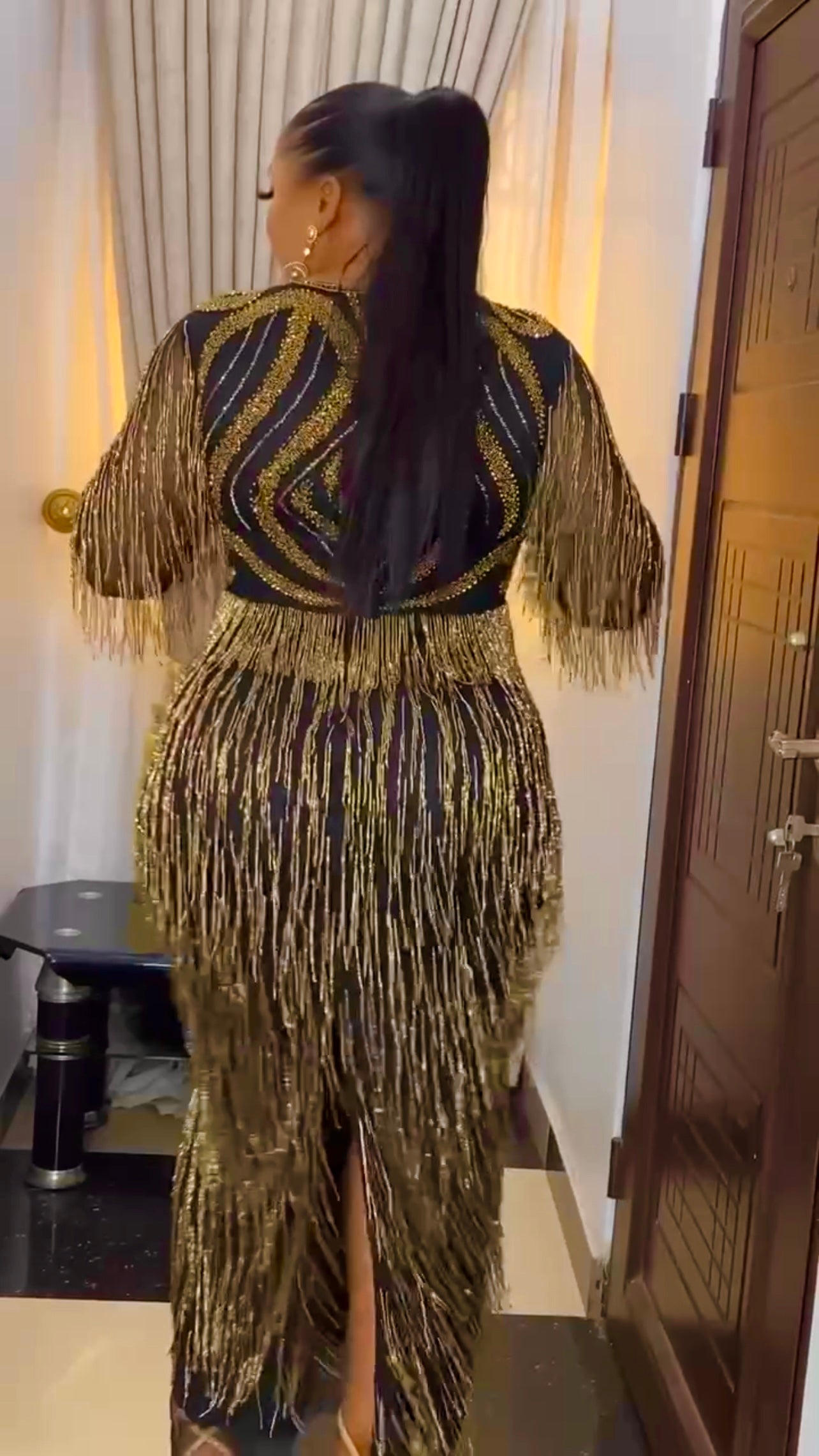 Gold Beaded Fringe Maxi Dress Embellished Wedding Guest Dress Birthday Party Cocktail Dinner Celebrant Worthy