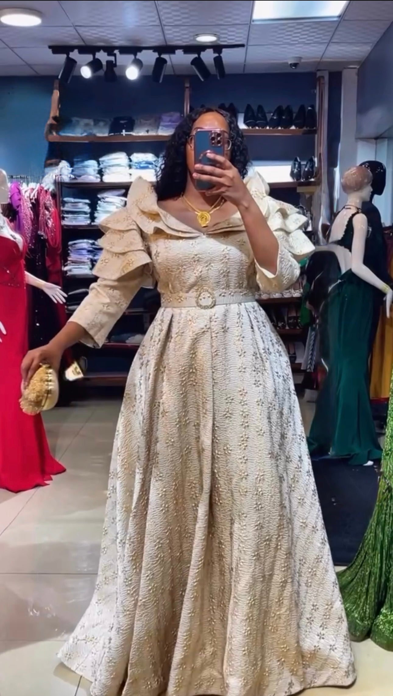 Gold Brocade Wedding Guest Dress Maxi Plus Size Mother of The Bride A-Line Gown Evening Wear Dinner Birthday Photoshoot Celebrant Worthy
