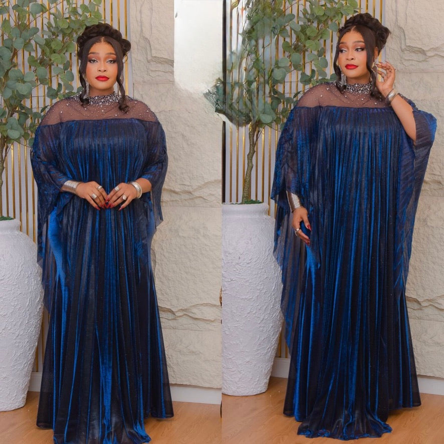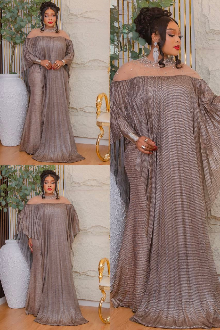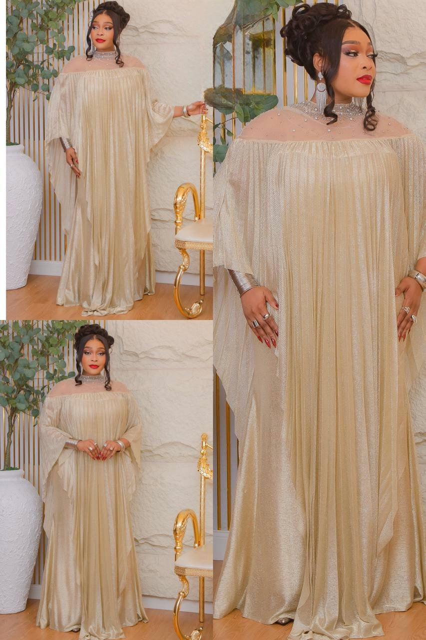 Gold Embellished Pleated Kaftan Asymmetrical Dress: Wedding Guest Attire, Mother of The Bride Outfit Graduation Cocktail Birthday Party