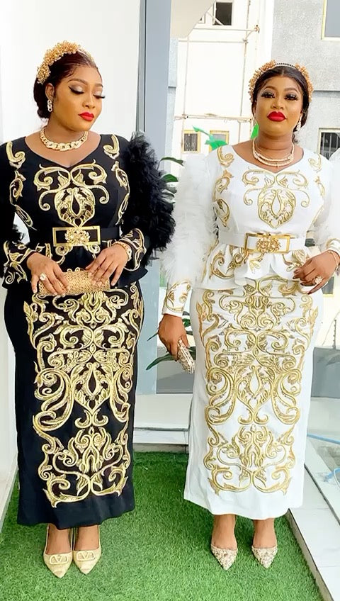 Gold Sequin Embroidered Ruffle Blouse and Skirt Peplum