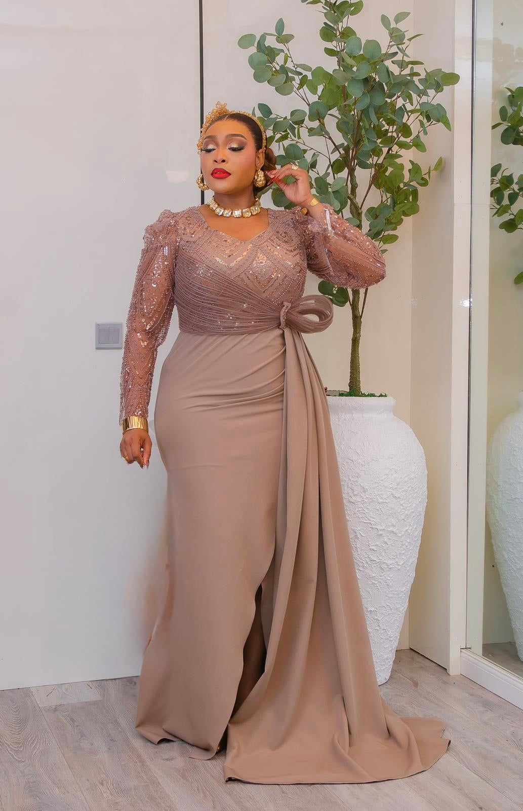 Gold Sequin Side Slit Formal Evening Dress: Cocktail Anniversary Wedding Birthday Mother of The Bride Outfit