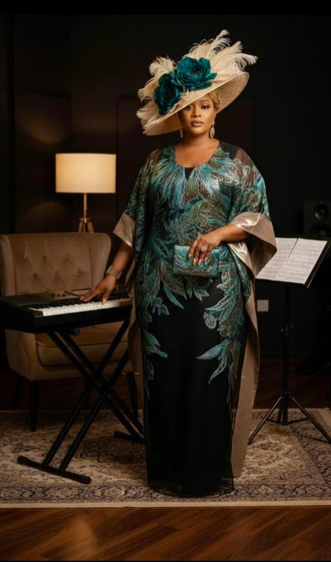 Green Brocade Kaftan Dress: African Bubu Wedding Attire Engagement Ceremony Cocktail Birthday Party