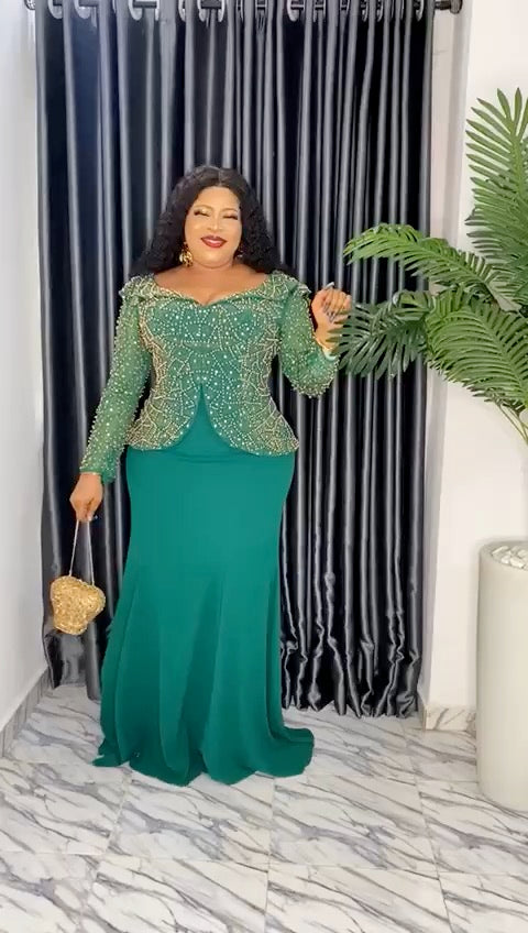 Green Embellished Peplum Maxi Dress