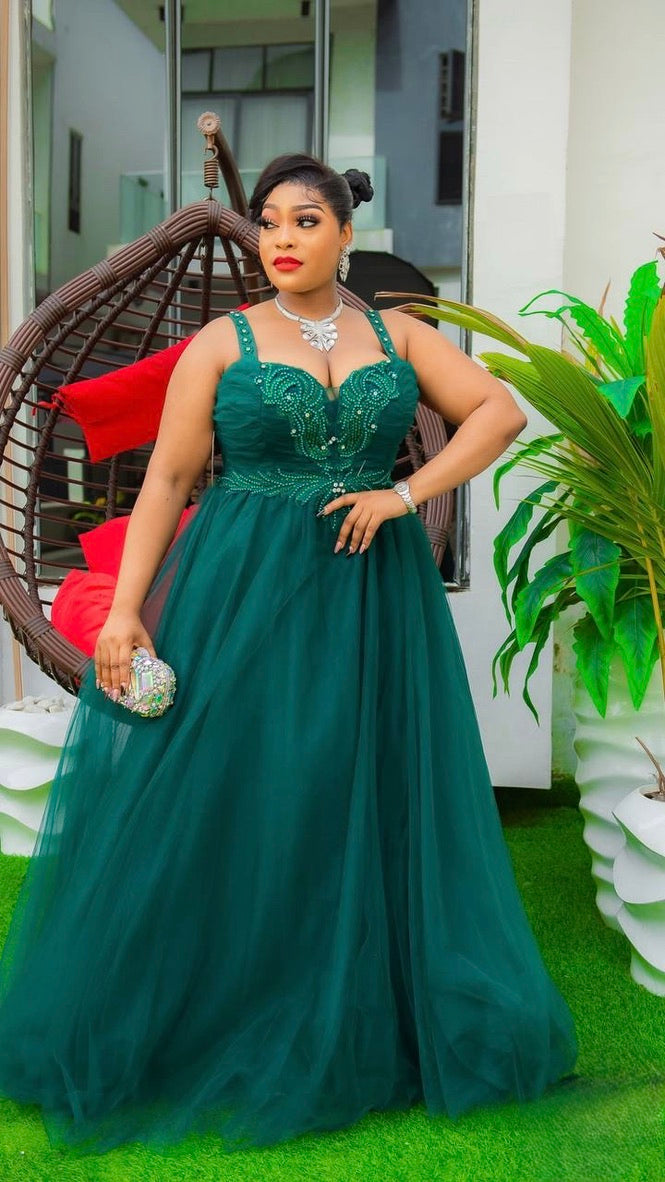 Green Spaghetti Strap Beaded A-Line Flare Gown for Mother of The Bride Wedding Guest Birthday Photoshoot