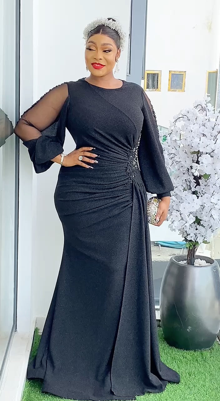 Long Slit Sleeve Applique Draped Maxi Evening Dress | Wedding Guest Birthday Party Anniversary