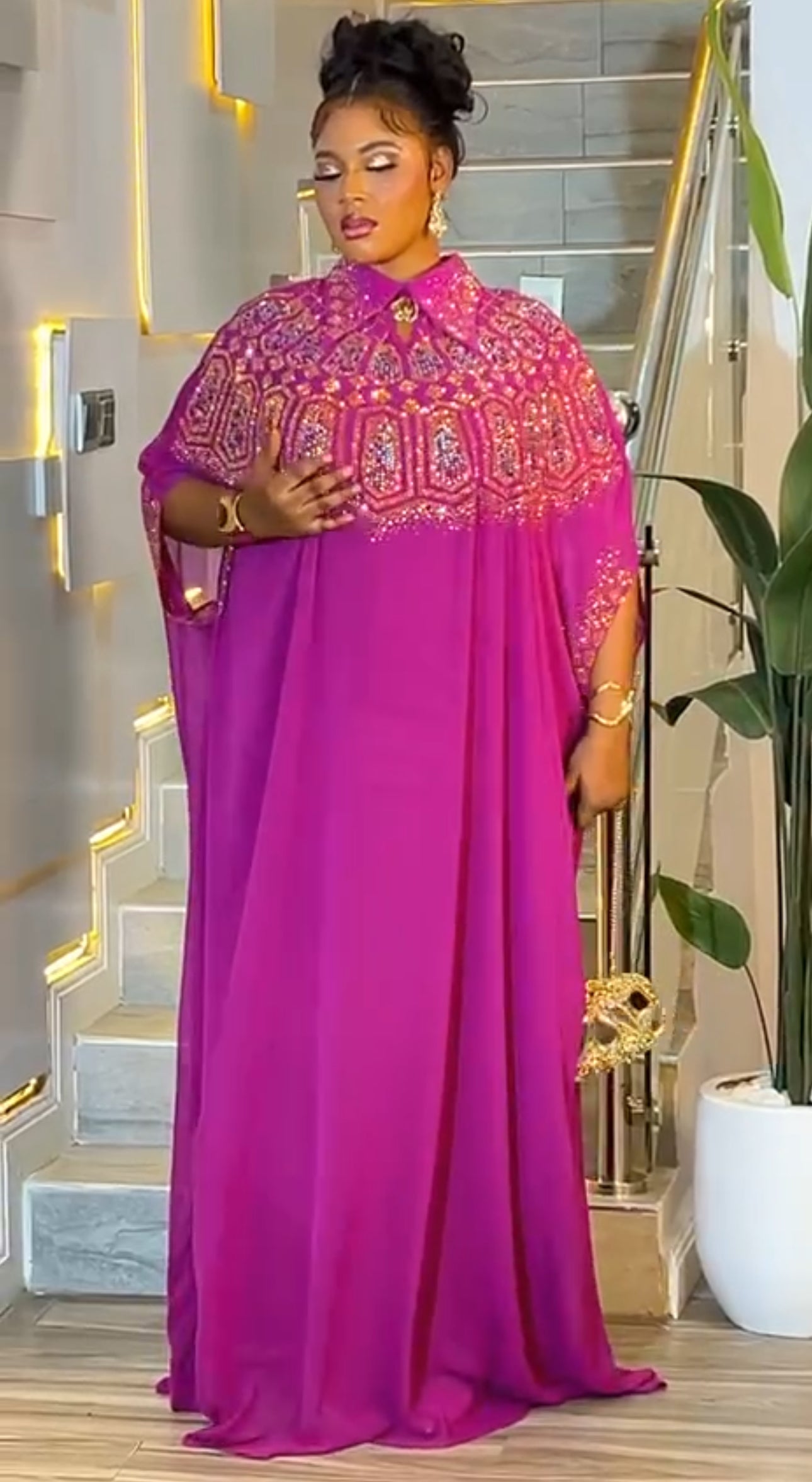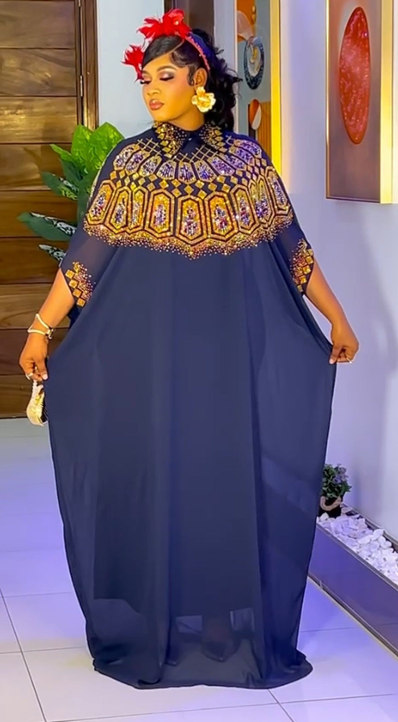 Black Kaftan Embellished Dress 2-Piece Outfit Set - African Wedding Guest Attire Engagement Ceremony