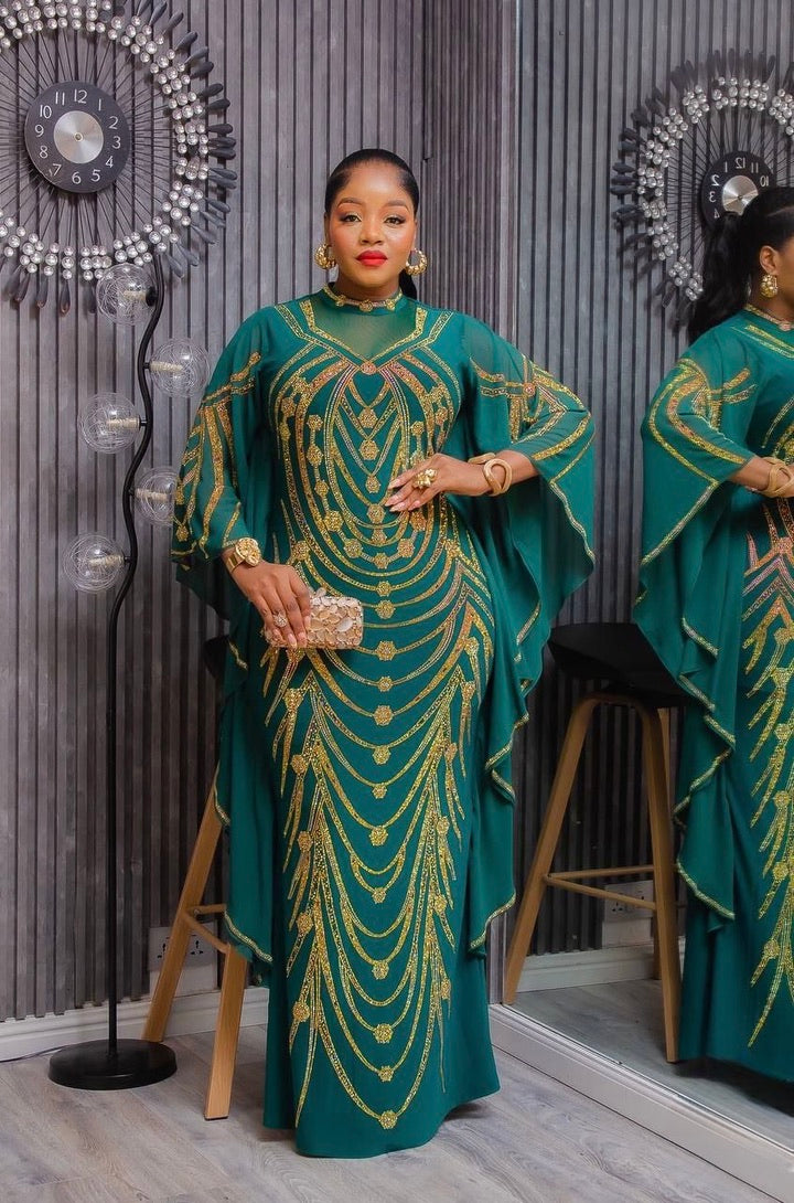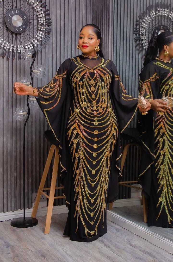Luxury Black Kaftan with Rhinestones - African Wedding Guest Dress Nigerian Engagement Ceremony Dinner Gala