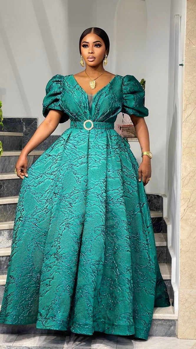Metallic Green Brocade A-Line Gown Pleated Long Maxi, Wedding Guest Mother of The Bride Cocktail Party Reception