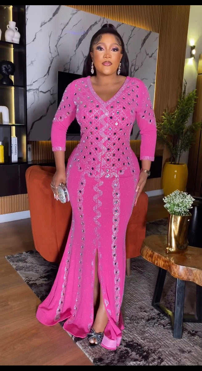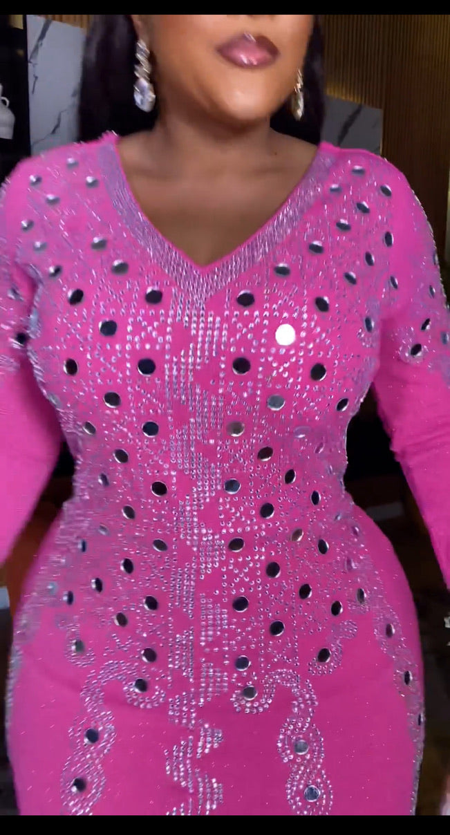 Mirrored Embellished Front Slit Maxi Gown Pink