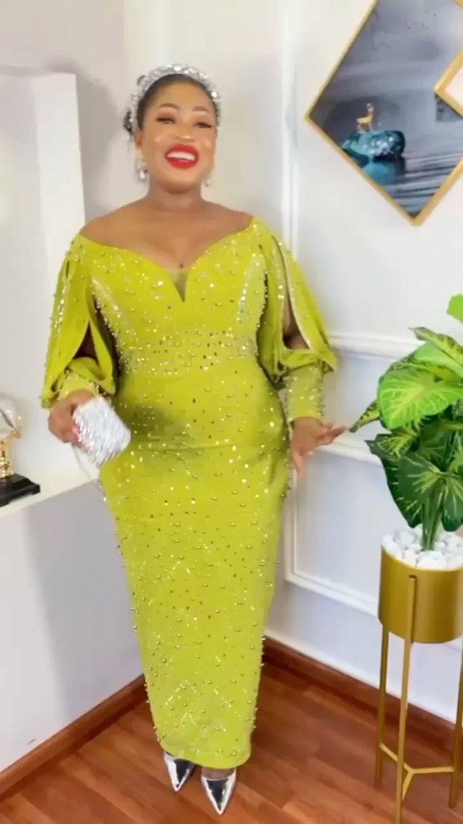 Off-The-Shoulder Embellished Slit Sleeve Dress Wedding Guest Party Birthday