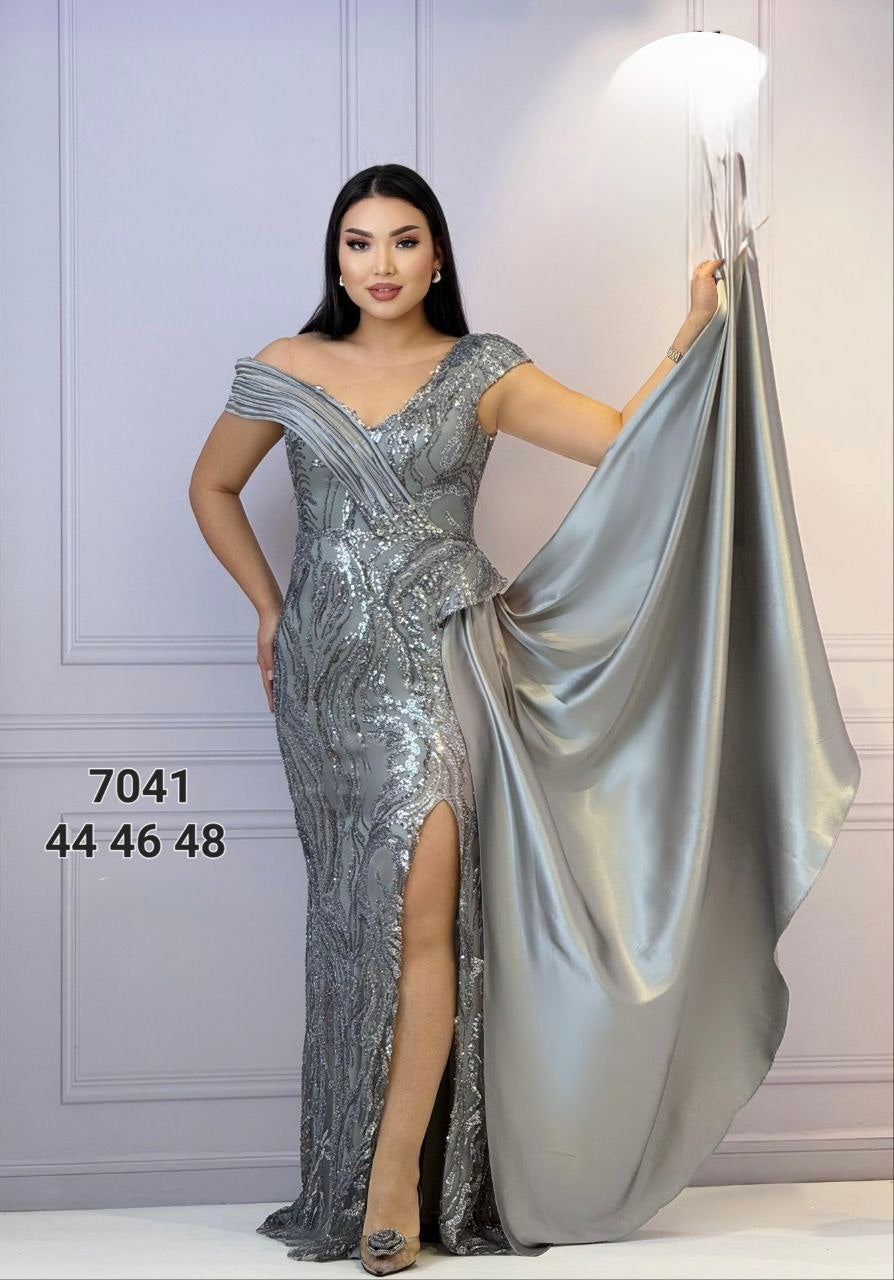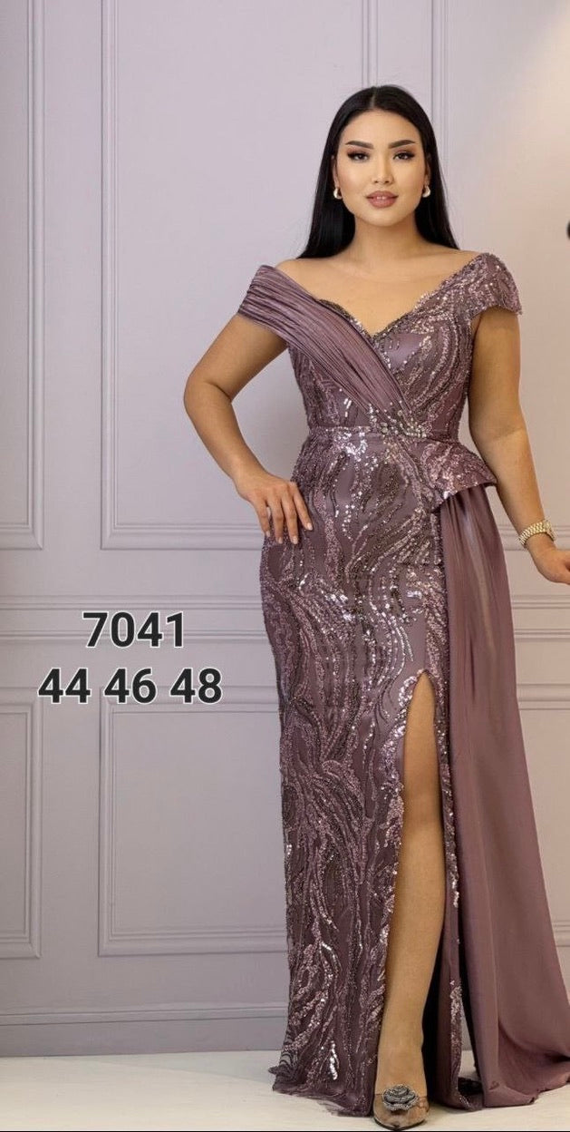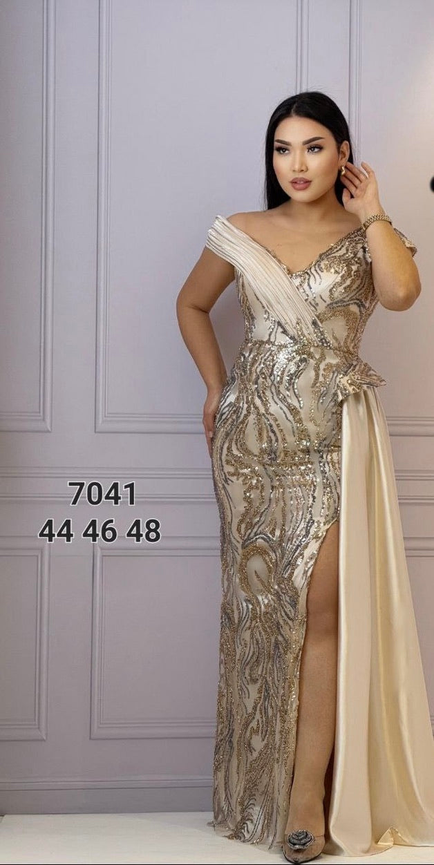 Off-The-Shoulder Sequin Side Drape Maxi Dress | Wedding Guest Bridal Photoshoot Mother of The Bride Birthday Celebration