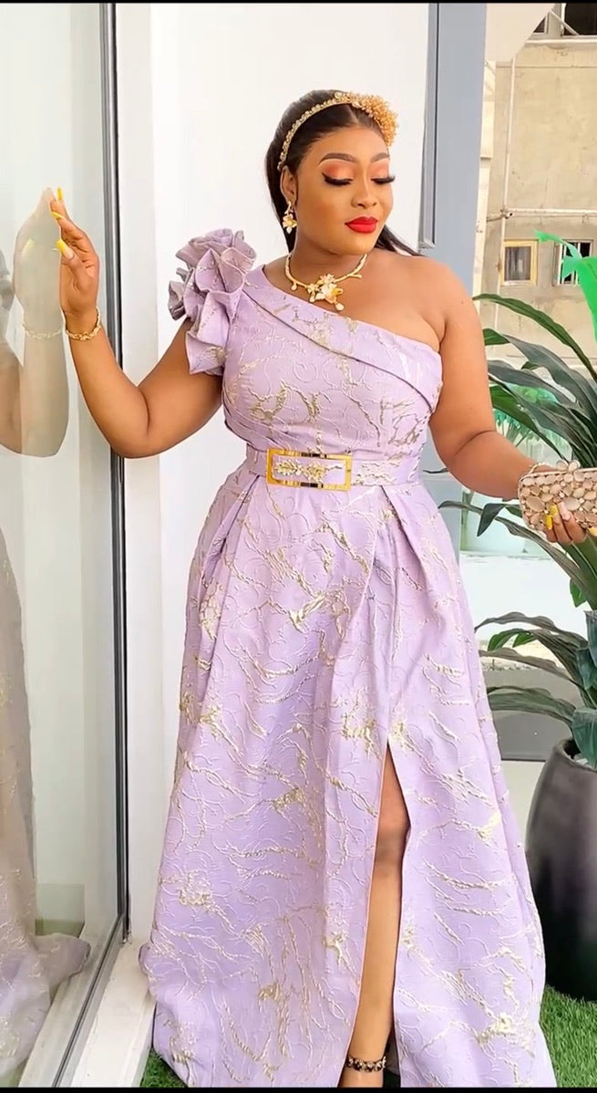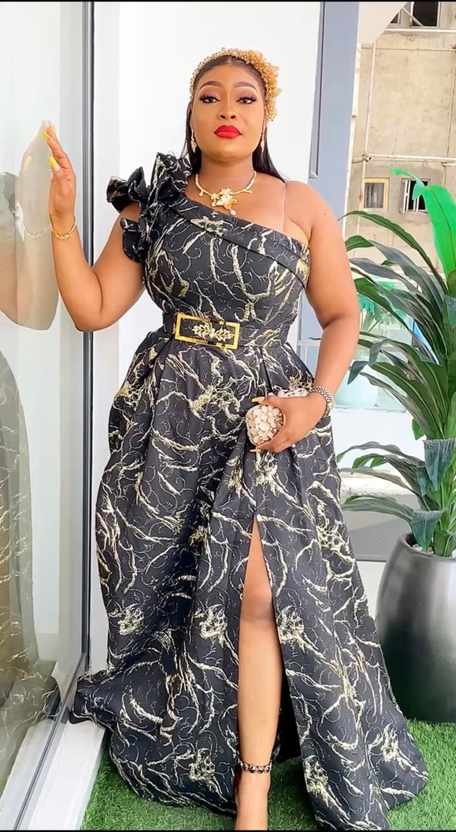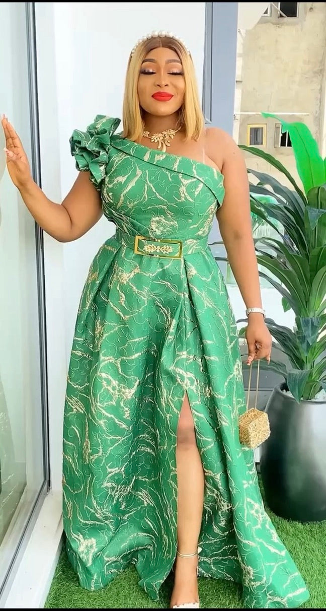 One Shoulder Brocade A-Line Gown with 3D Flower - Wedding Guest Dress Mother of The Bride Photoshoot
