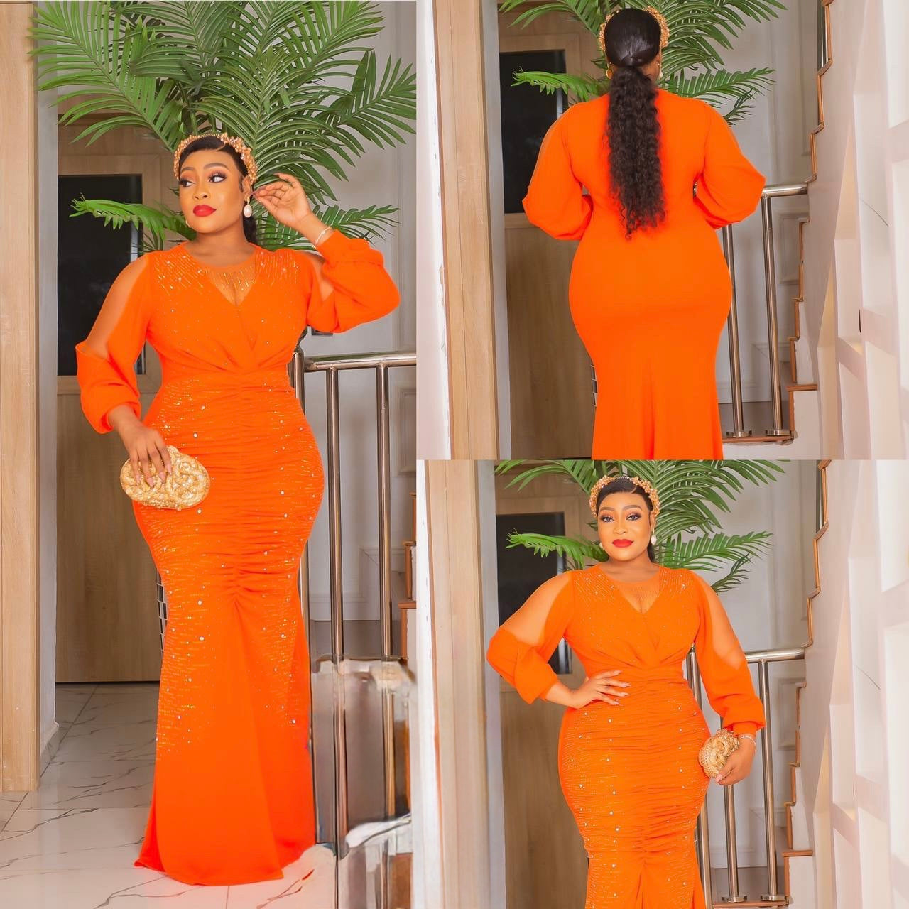 Orange Embellished Slit Sleeve Mermaid Dress - Wedding Guest Cocktail Reception Mother of The Bride or Groom