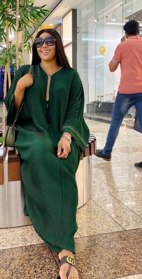 Pleated Kaftan and Scarf Rhinestone Neckline Maxi Floor Length
