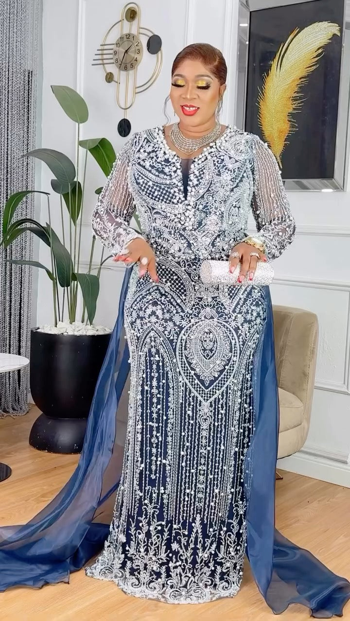 Plus Size Navy Beaded Mother of The Bride Mermaid Dress Overskirt, Wedding Guest Dress Floor Length Maxi, Birthday Formal Evening Party Wear
