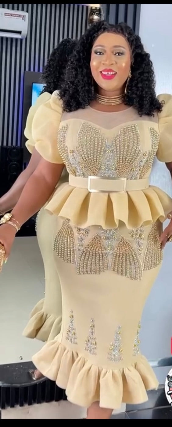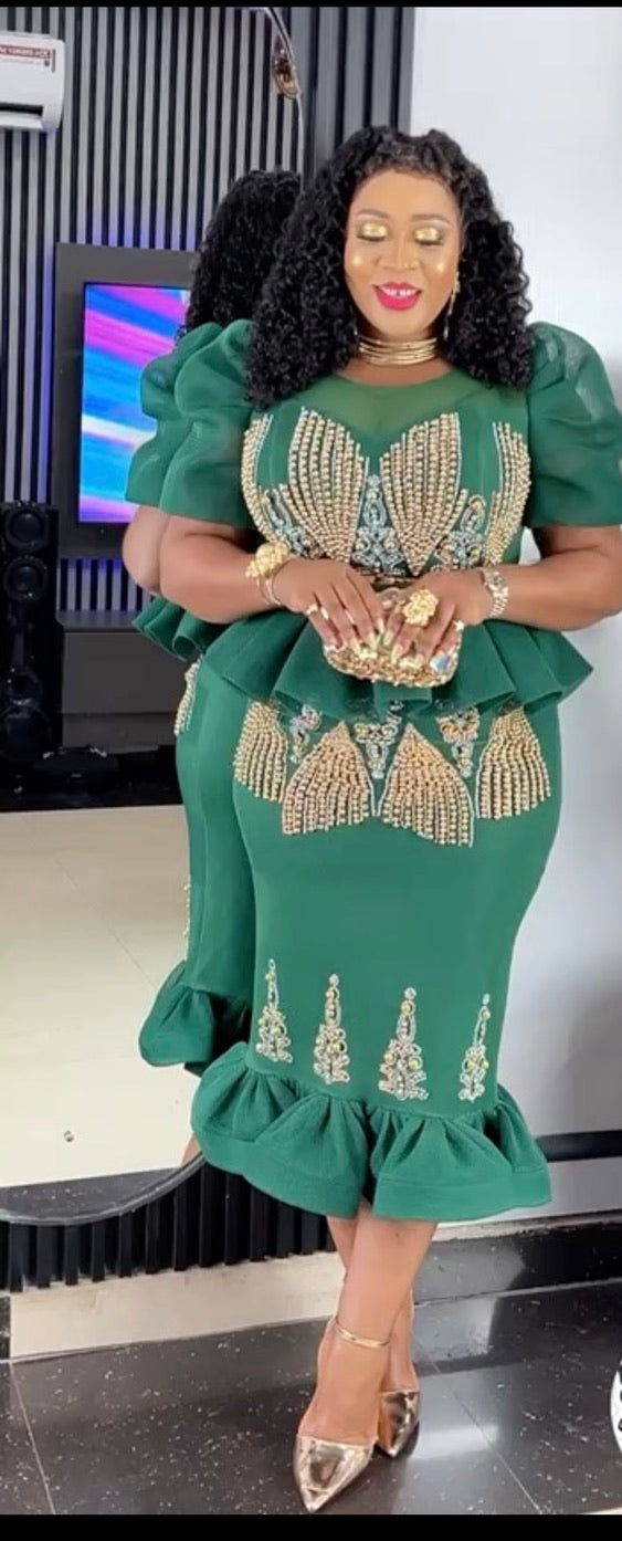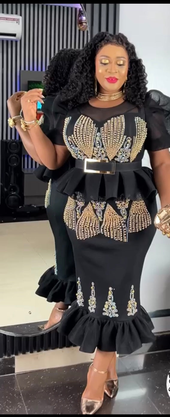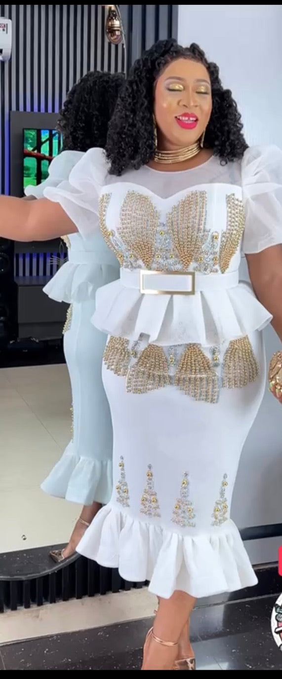 Elevate your style with our Puff Sleeve Beaded Peplum Midi Dress. The delicate beadwork on the blouse and skirt, coupled with a flattering belt, creates an eye-catching, luxurious look. Perfect for any party, this dress exudes sophistication and class. Stand out in the crowd and turn heads with this sexy and elegant dress.